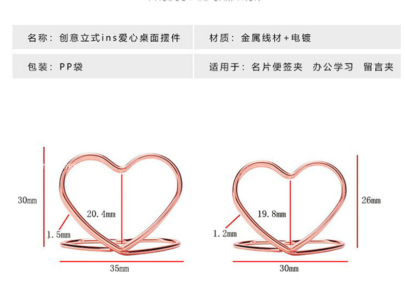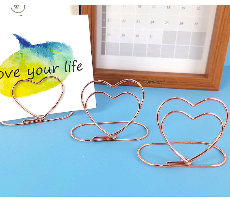 現物二重愛便箋クリップ三角形名刺クリップデスクトップメッセージクリップハート型写真クリップホテル席クリップ