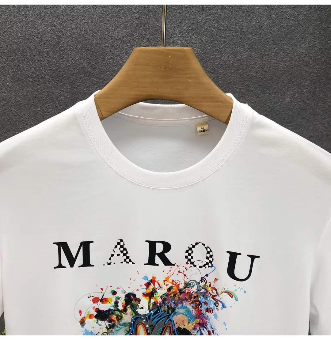 2023夏新作高级感プリント半袖tシャツメンズ潮牌insトレンド丸首半袖上着メンズ