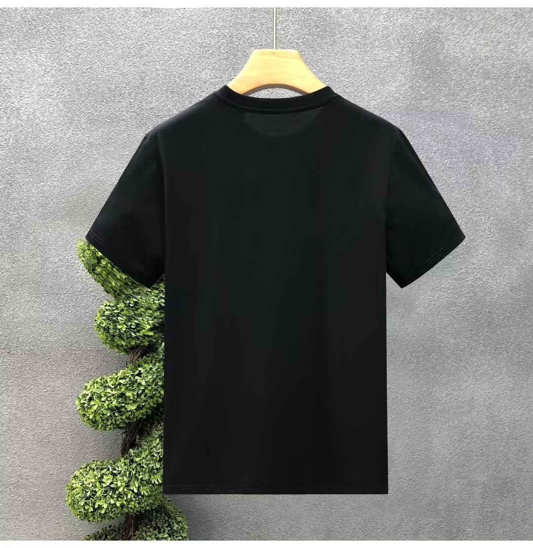 プリントtシャツ半袖メンズ2024新作夏カジュアルトレンド行スリム高級感黒ボトム半袖