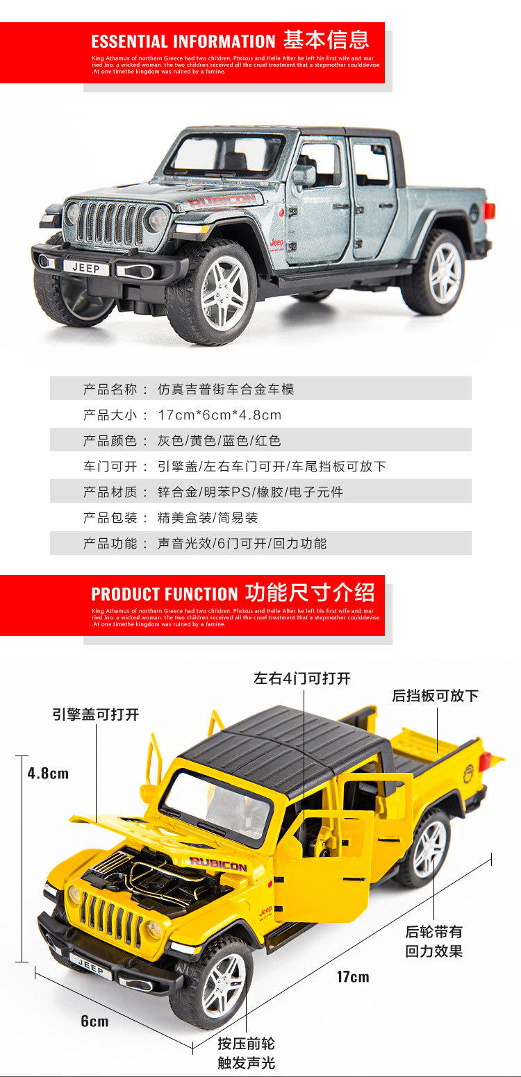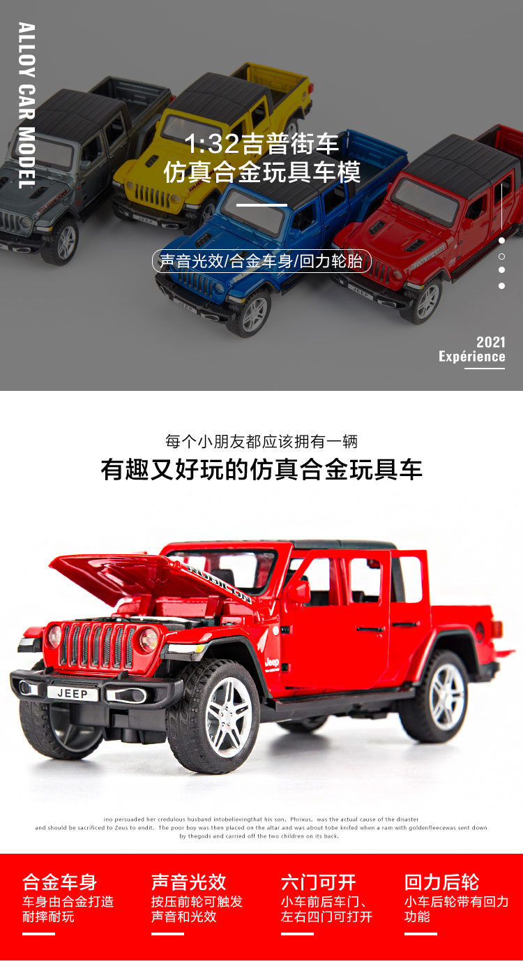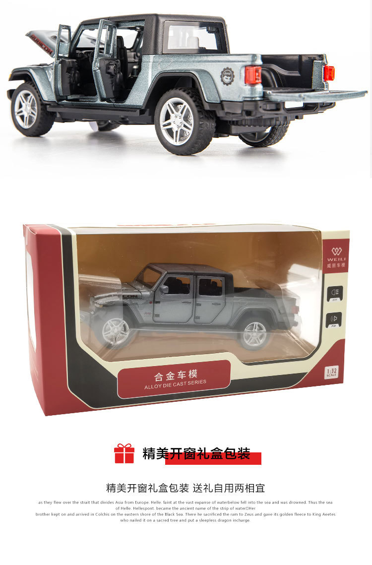 威麗合金の車のモデル1:32牧馬人ジープの小さい輪のオフロード車は音光のおもちゃの車の音楽の模型の置物を持ちます。