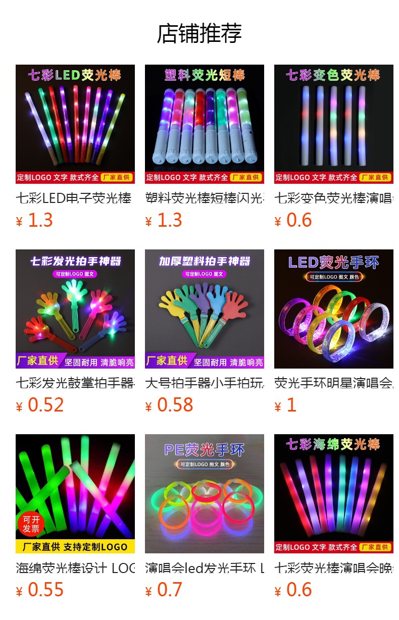 手持荧光棒演唱会道具发光棒夜光闪光棒批发地推夜市摆地摊小玩具