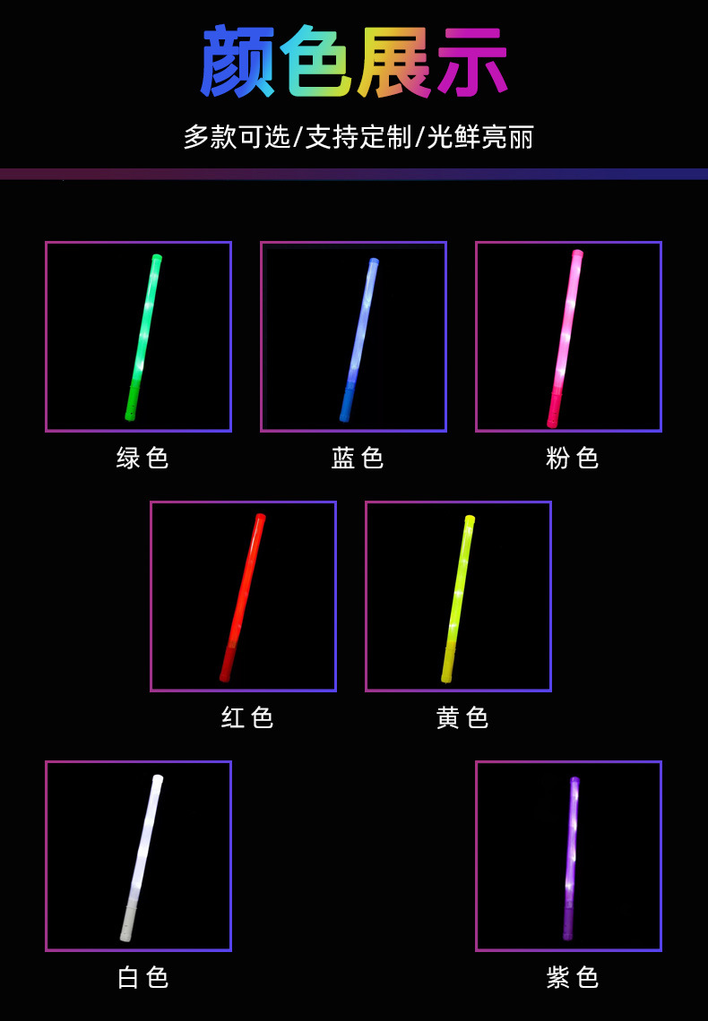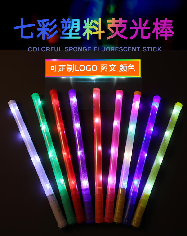 大号荧光棒 闪光棒 演唱会荧光棒 批发短棒彩虹棒 LED七彩发光棒