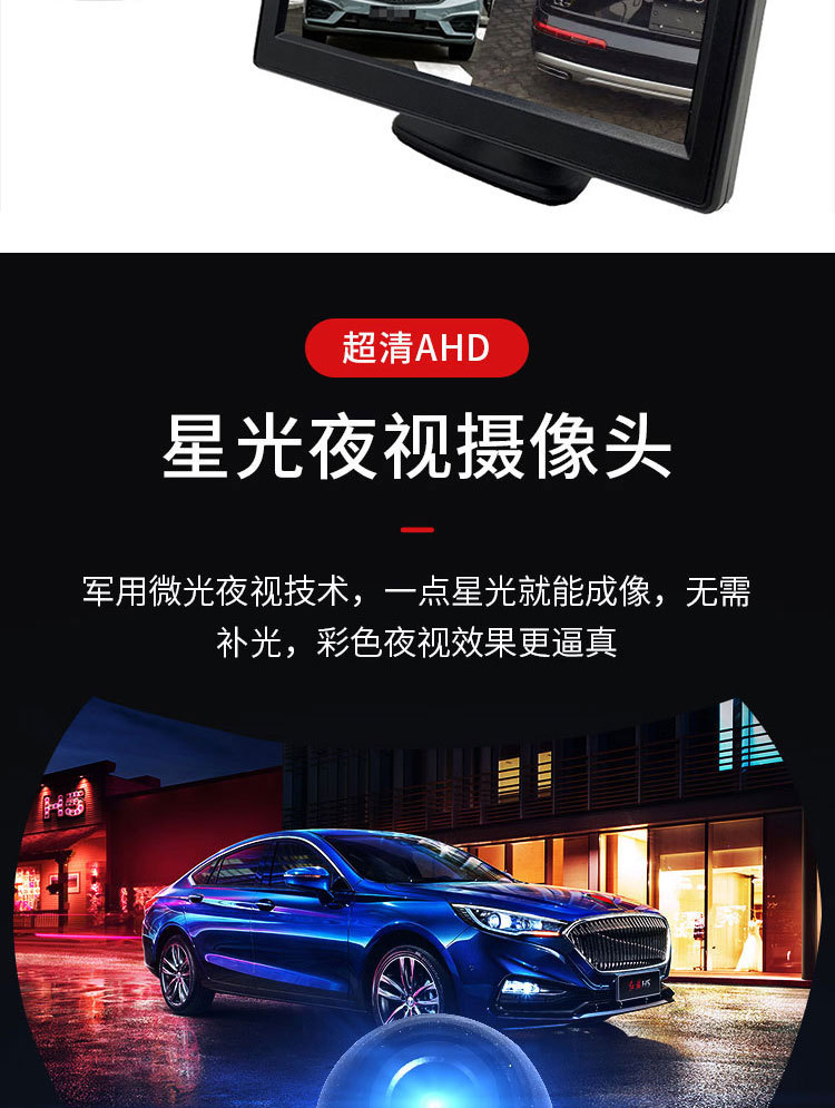 車載5インチデュアル画面同画面ディスプレイahd左右死角右視倒映像カメラハイビジョン暗視