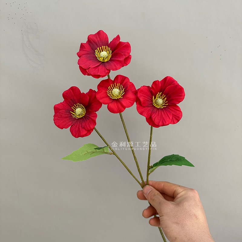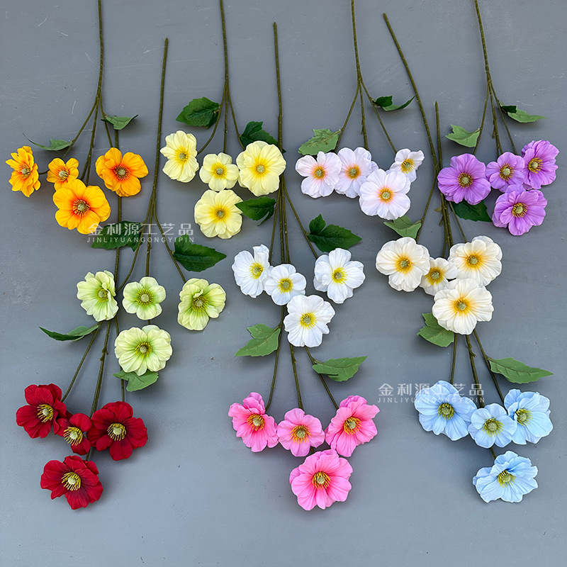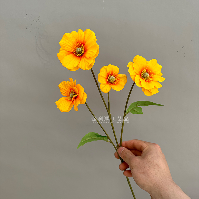 虞美人の家のシミュレーションの花の植毛のケシの人工花の造花の装飾の卸売りの越境して秋の色を越えます。