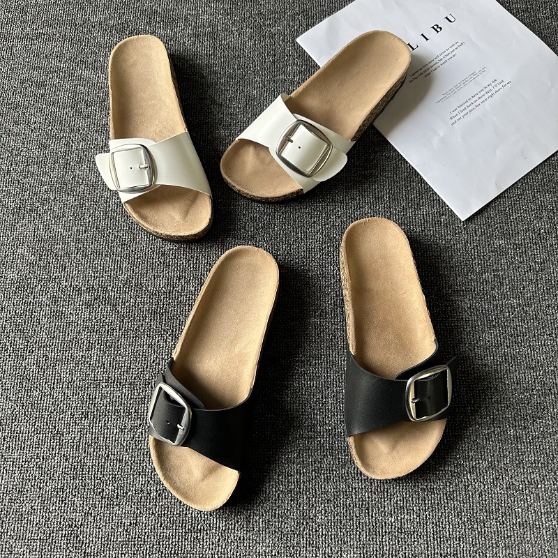 2025年 外貿越境 レディースサンダル スリッパ カジュアル ビーチサンダル ダブルバックル コルクサンダル 工場在庫