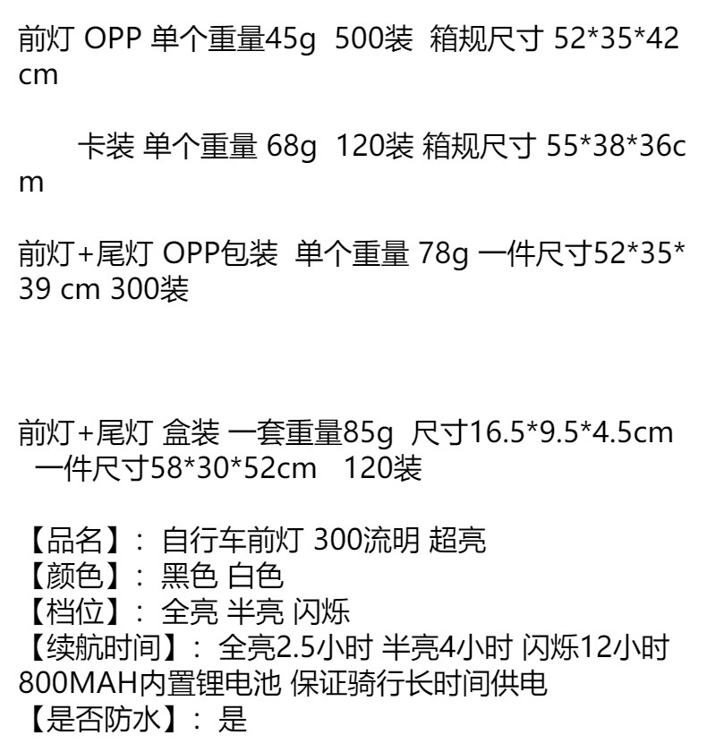 カラー 黒のオップ,黒いバブルパッケージ,ブラックヘッドライト + テールライトopp,ブラックヘッドライト + テールライト箱入り