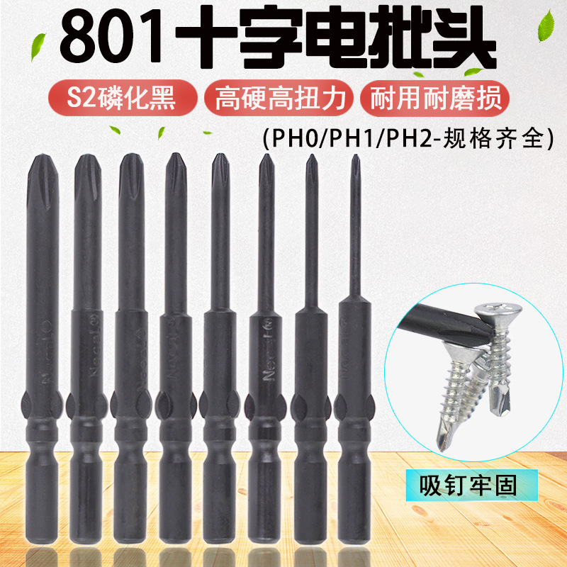 S2リン酸塩処理黒色硬化電動ドライバービット5MM十字型工業グレード801電動スクリュードライバービット強力磁性延長ビット
