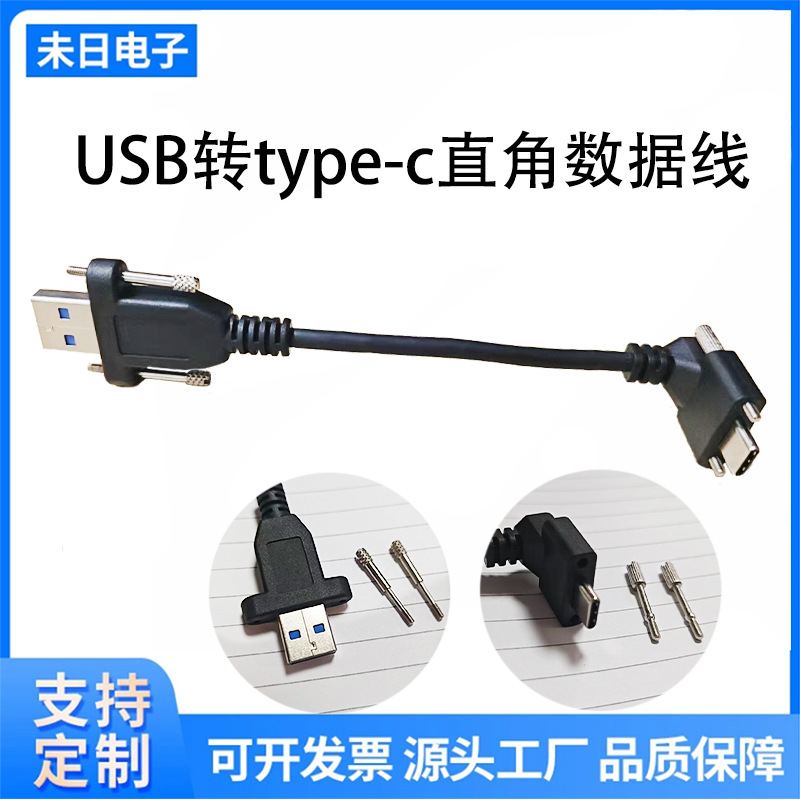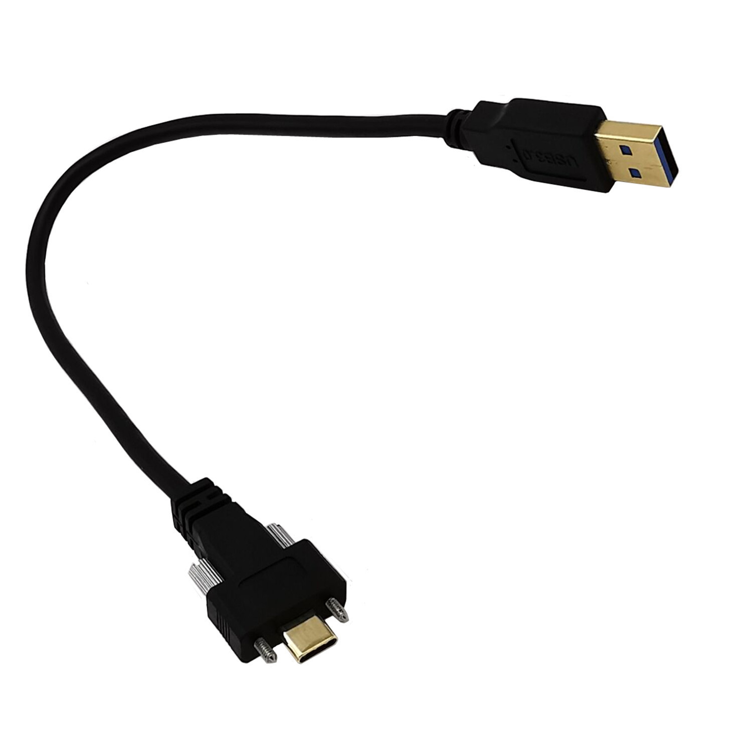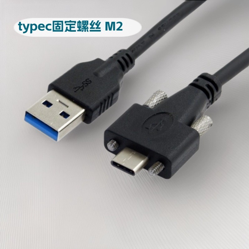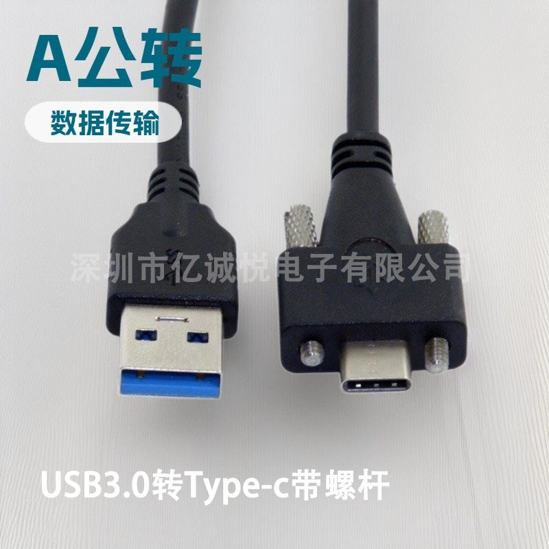 USB3.1Type-C转USB3.0公弯头带螺丝工业相机锁面板数据连接线 ;