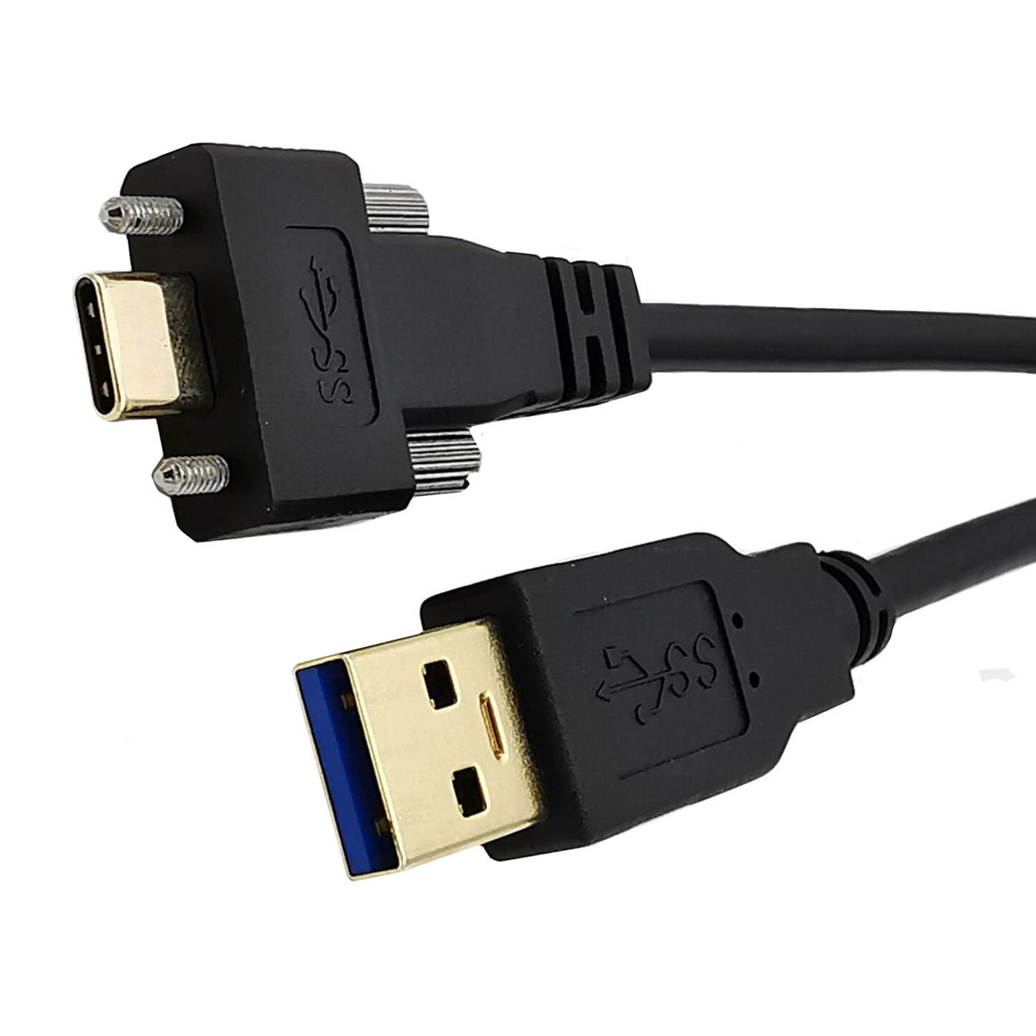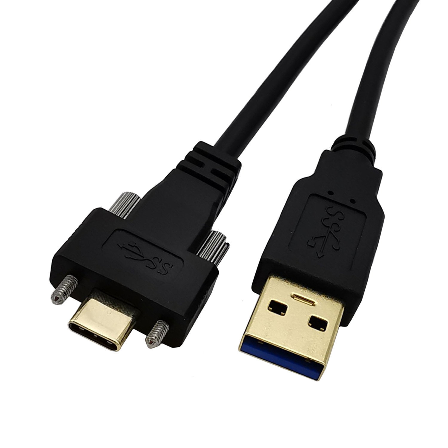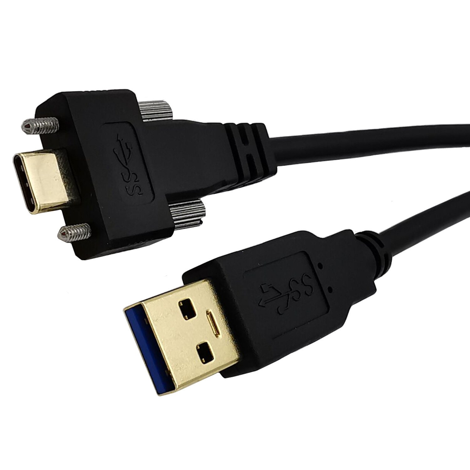 USB3.1Type-C转USB3.0公弯头带螺丝工业相机锁面板数据连接线 ;