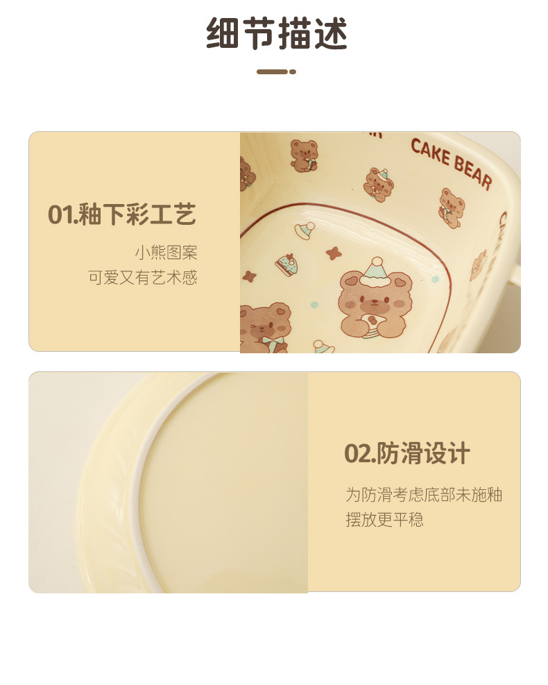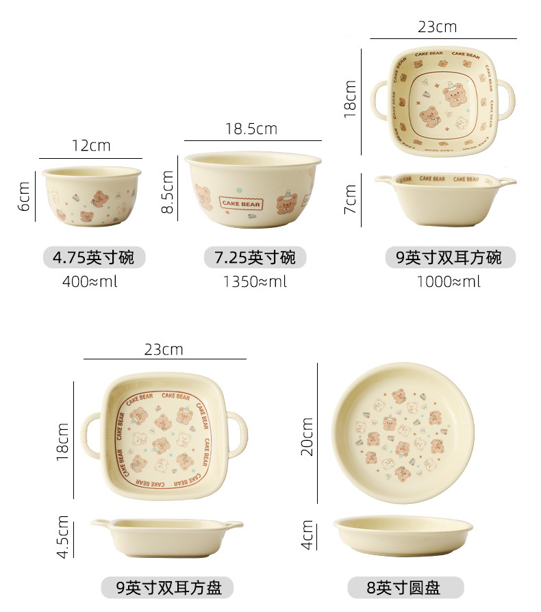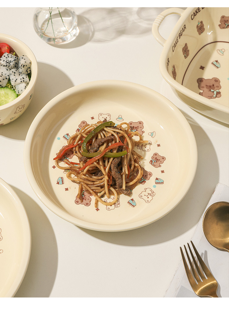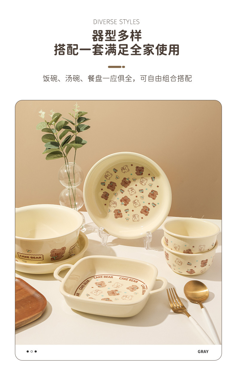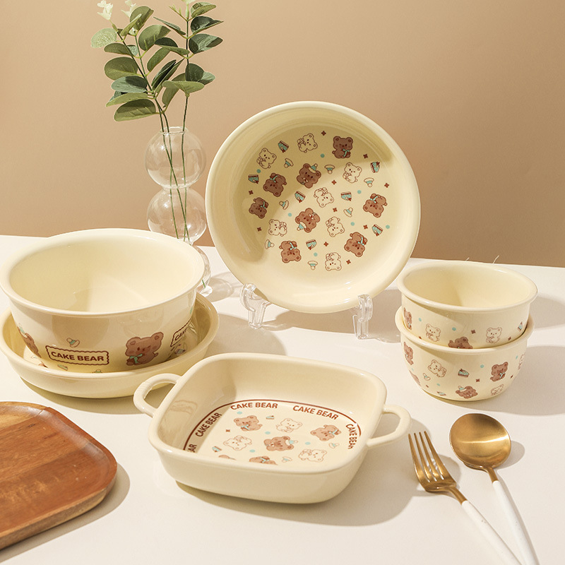 クリーム系漫画セラミックボウル皿笠ボウル熊かわいい食器インスタ风ボウル皿セット家庭用アイデア