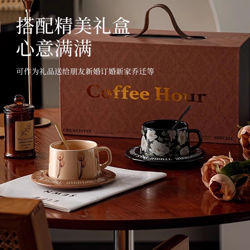 花のコーヒーカップの皿は結婚して新人の新婦の贈り物を送ります。