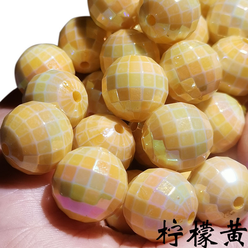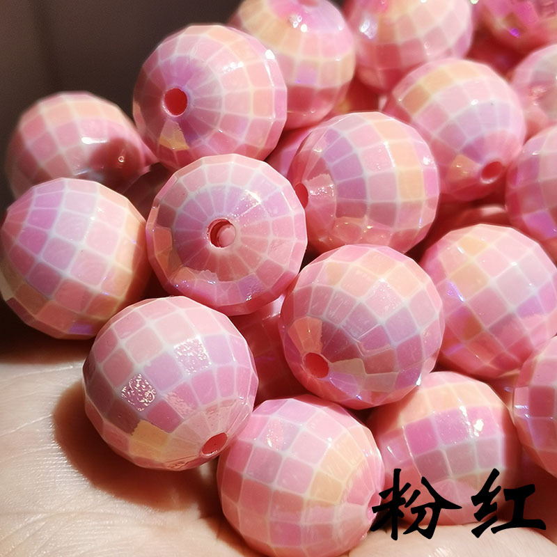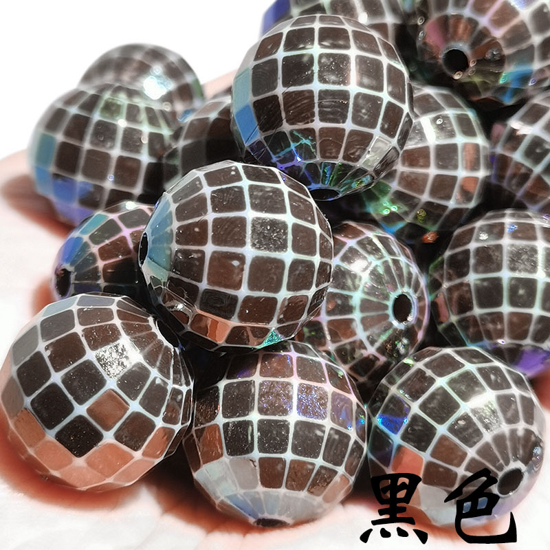 16mm蹦迪珠地球珠DIY手机链串珠手工材料亚克力切面UV七彩格纹珠