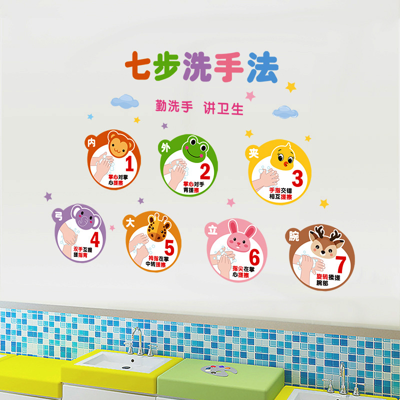 旅康の漫画の動物の7歩の手洗い法は子供を洗います。