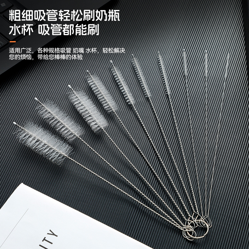 304不锈钢尼龙吸管刷子10件套装奶瓶奶嘴水杯刷子漏斗环保清洁具