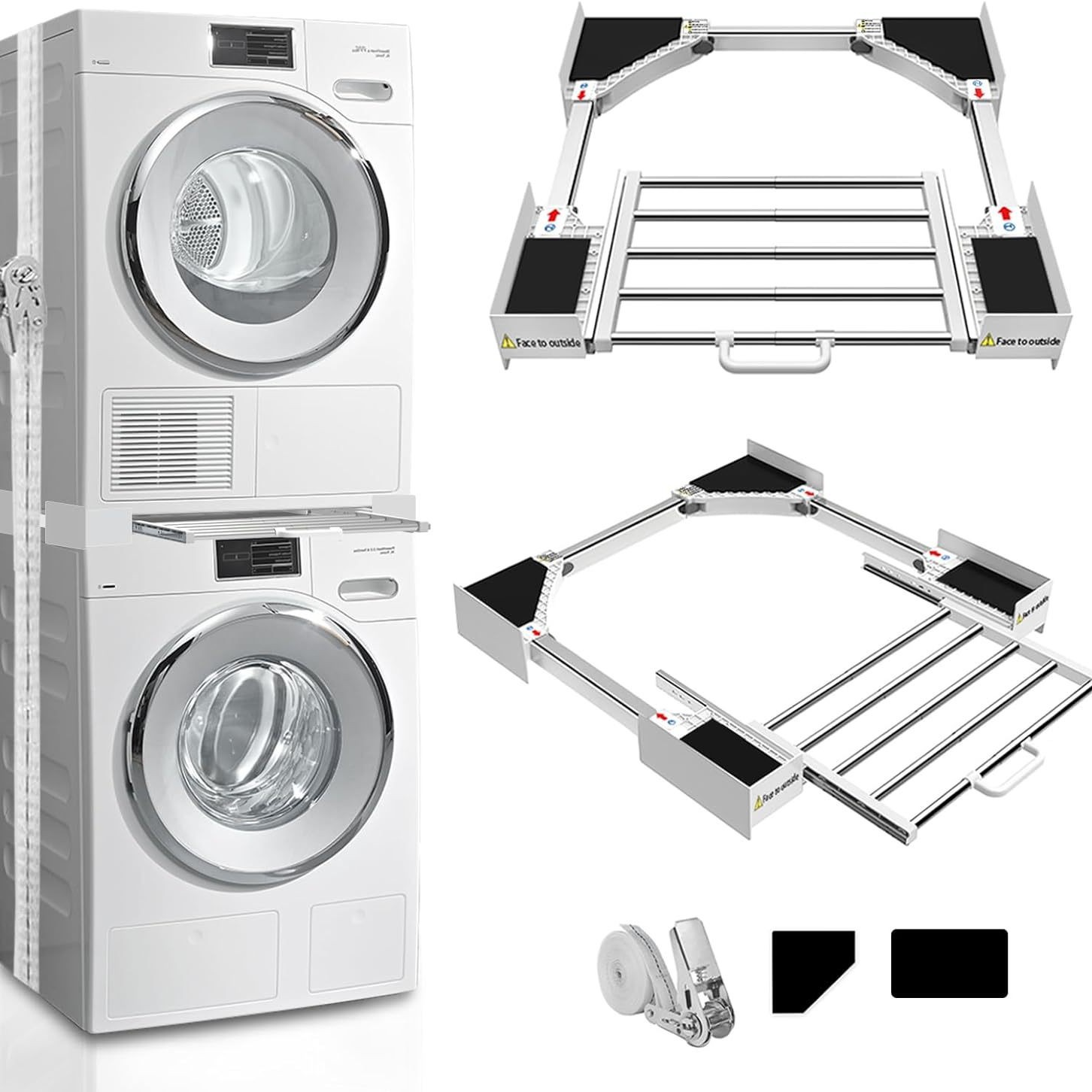洗濯機と乾燥機のスタックキット接続ブラケット、積み重ね可能なベース、ユニバーサル引き出し式ブラケット、結束紐付き