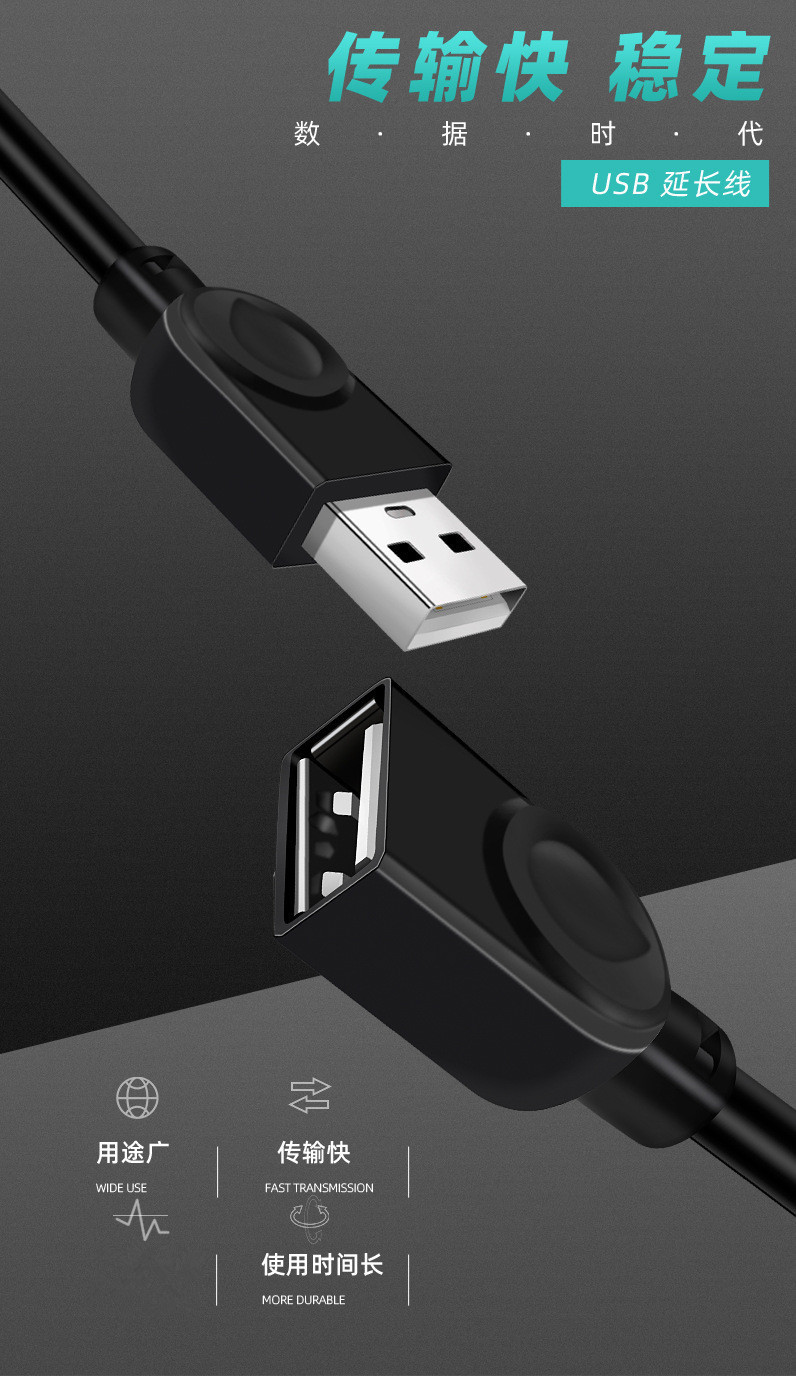 Usb延長線公対母延長5メートル8メートル3メートル2.0高速データ充電ケーブルパソコンusbマウス