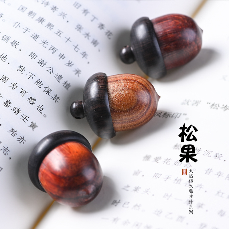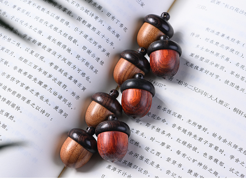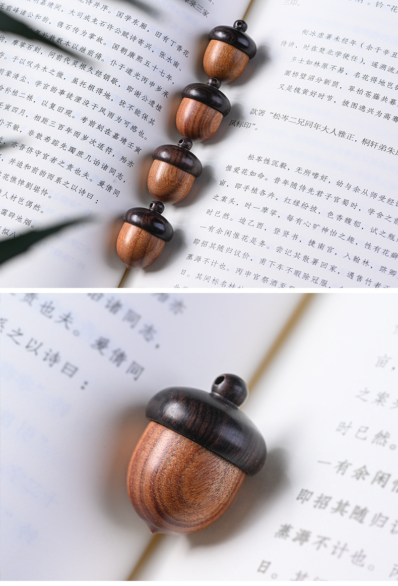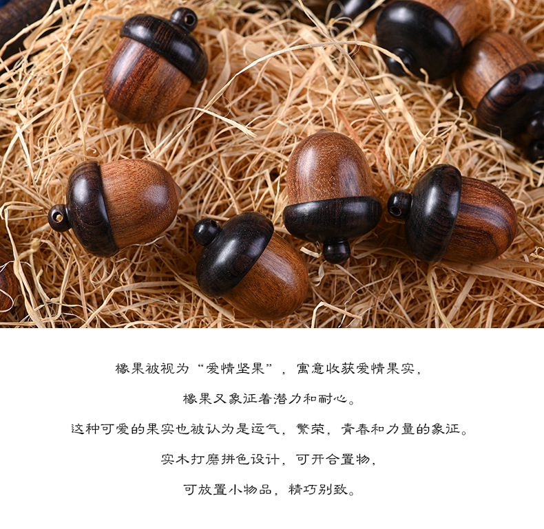 木雕小榛果松果配件 拼色设计 造型可爱圆润 螺旋可开合设计 可置物 精巧别致 可diy各式小挂件 手机链 钥匙扣等