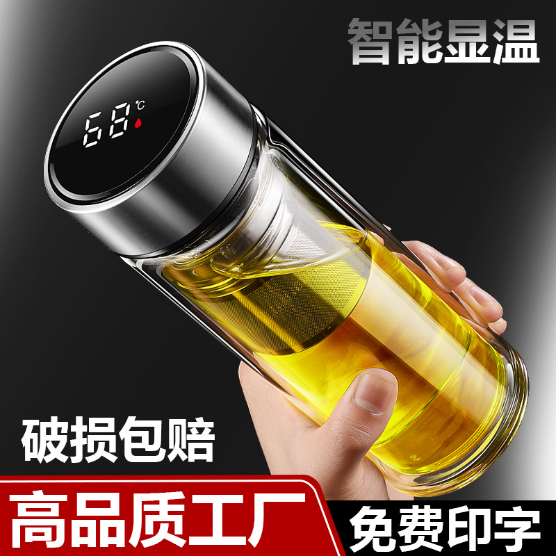 スマート温度測定二重ガラスコップ卸売りコップガラスコップお土産コップ茶水分離グラス