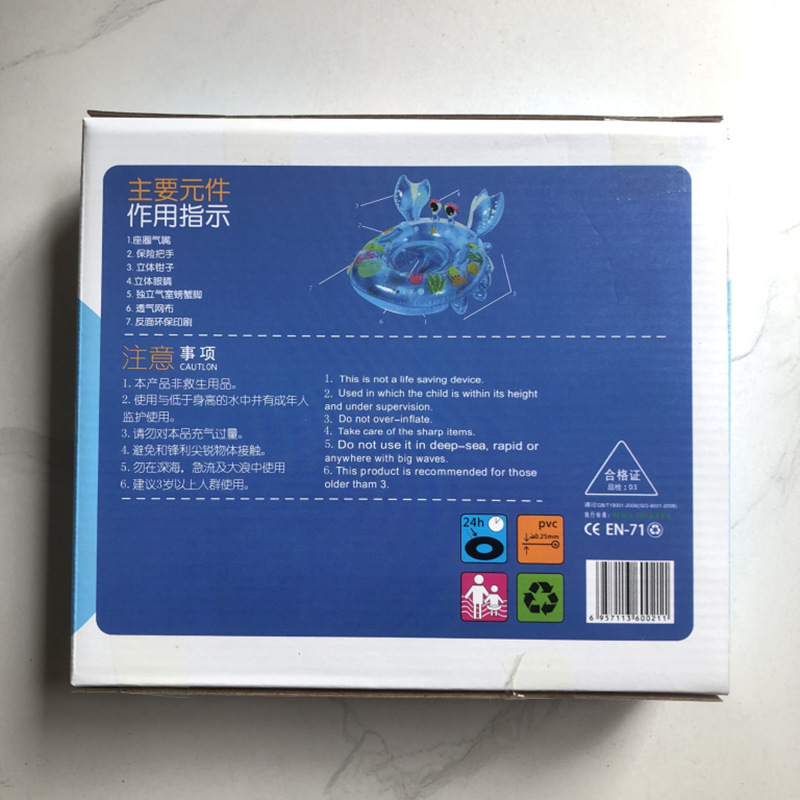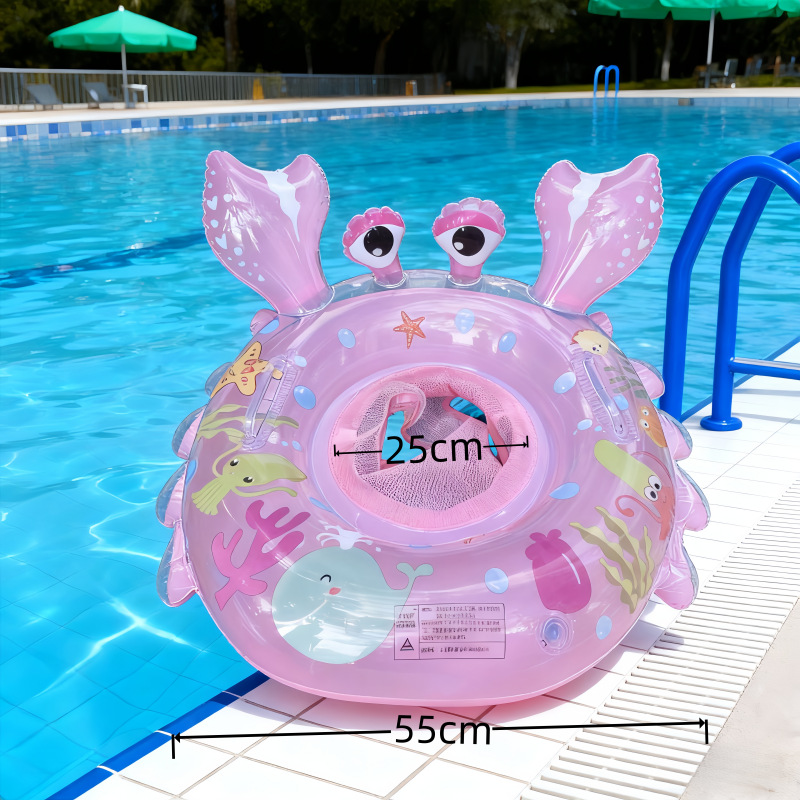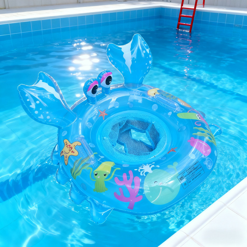 此款儿童带兜螃蟹大座圈是我公司2024生产出来的火热爆款,因款式新颖,造型独特,深受广大宝宝的喜爱,可在游泳馆,母婴店,个人家庭,池塘,水库,水池里使用,宝宝把两只脚插入2个孔中,坐在游泳艇里面,脚部可以用力蹬来回晃动,双手也可以自由的划水娱乐,功能性很全,可以促进宝宝的手脑结合能力,还能达到促进发育强身健体的好处。。