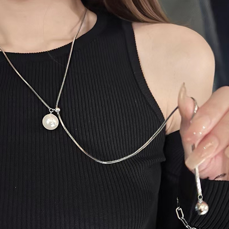 钛钢链条珍珠长毛衣链新爆轻奢高级感气质时尚小众项女高级感配饰