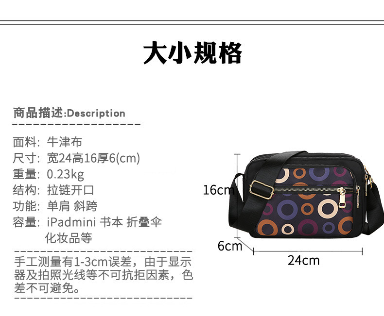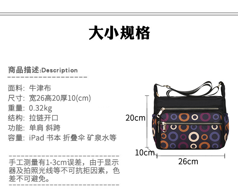 中年母親のショルダークロスボディバッグレディースバッグファッションクロスボーダーカジュアル軽量オックスフォード布ママバッグキャンバスバッグ卸売