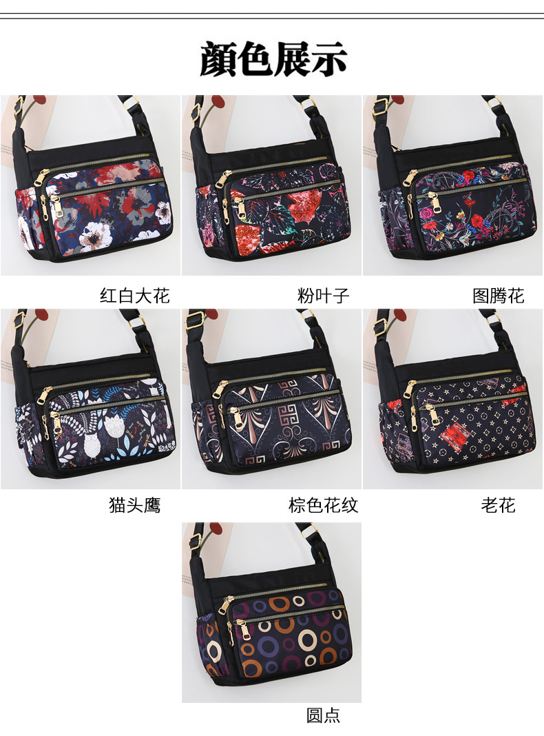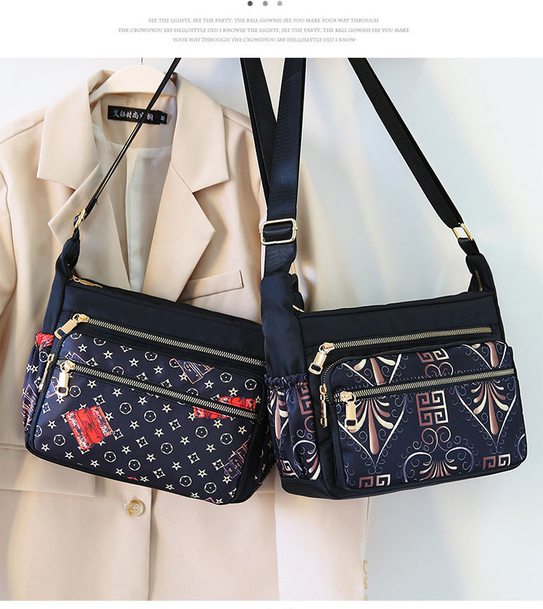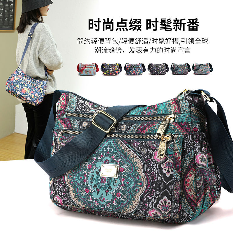 卸売カジュアル軽量ママバッグオックスフォード布メッセンジャーバッグ女性のナイロンバッグ新しい防水プリントショルダーバッグ