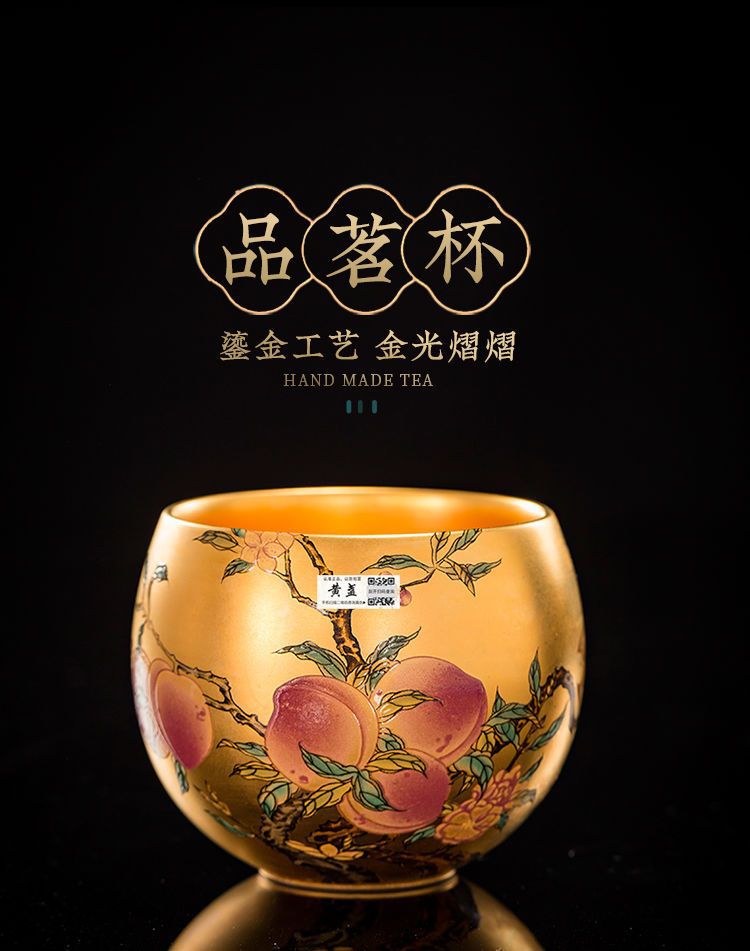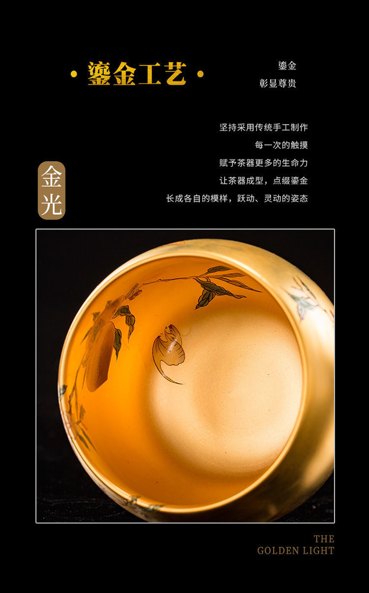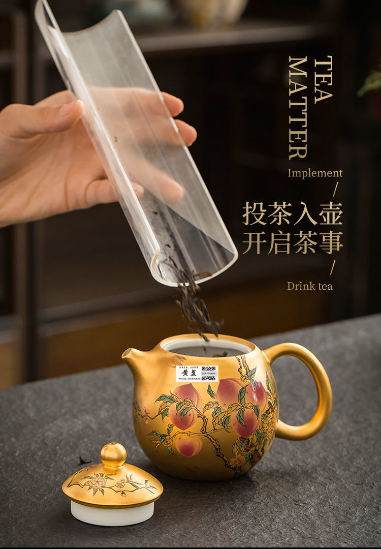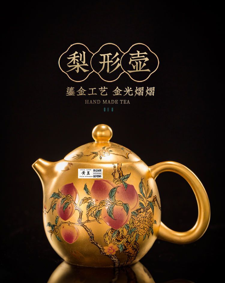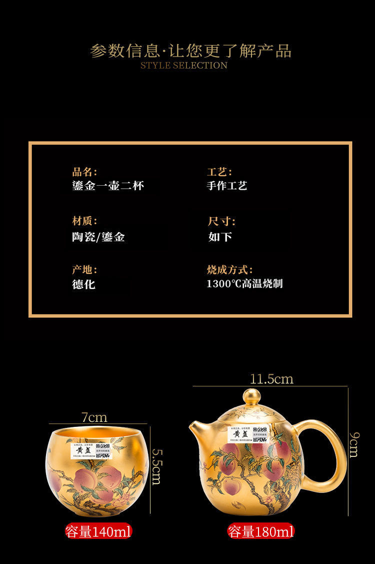 手描き九桃金ティーポット一本二杯マスター純手作り金ポット家庭用ギフトカップ高級茶器