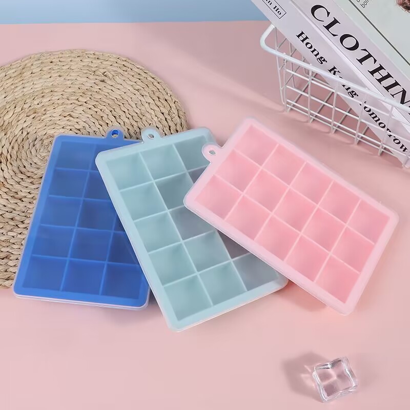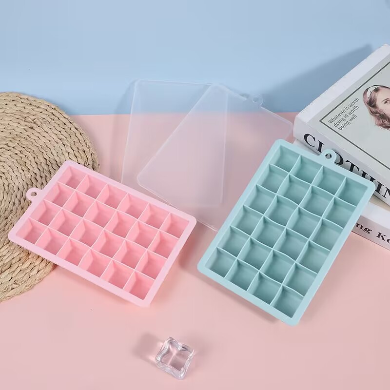 シリコーン製氷皿アイスボックス夏の自家製アイスキューブ家庭用製氷皿蓋付き金型 15 グリッド 24 グリッド食品グレード