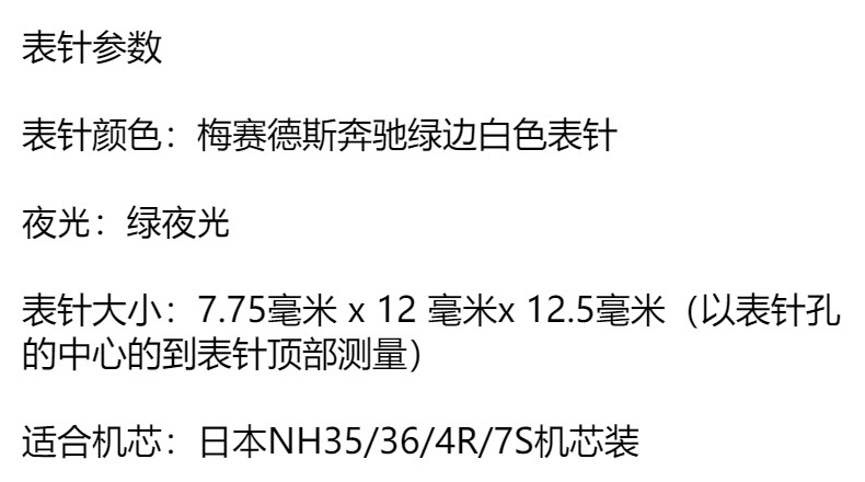 腕時計の部品の時計の針の黒い辺の白色のベンツの3針の緑の夜光はn 35/36 4r 7sのムーブメントに適します。