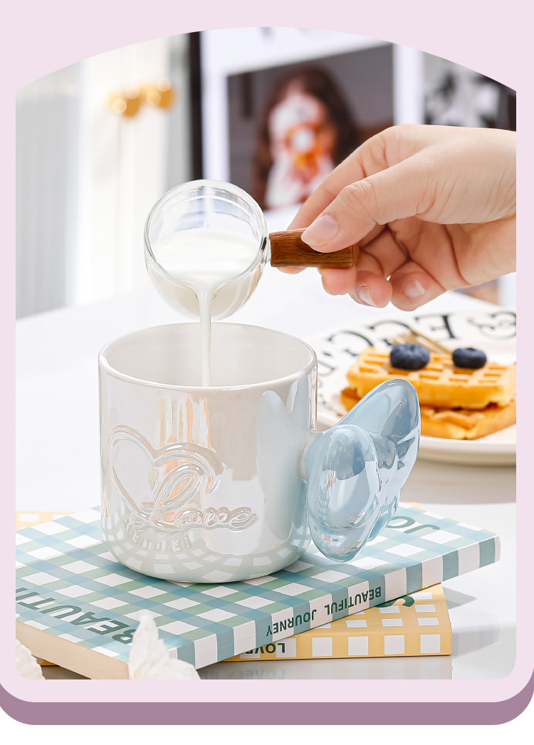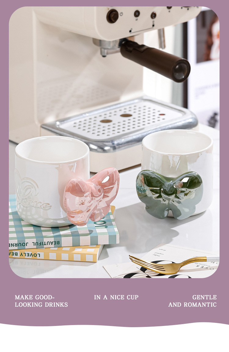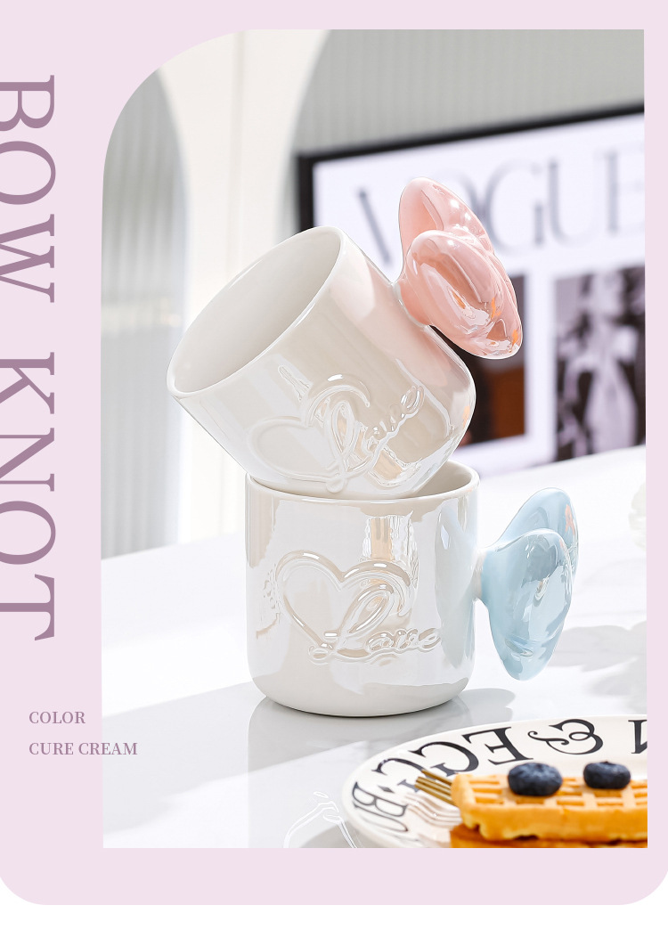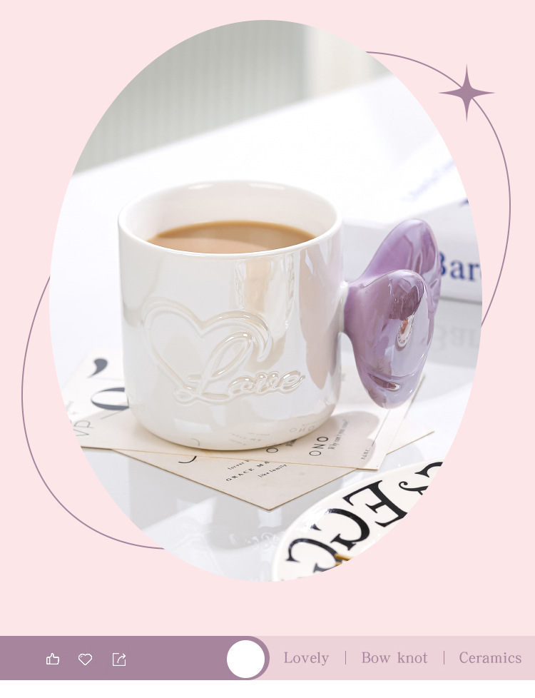 Ins風少女心珠光マグカップリボンハンドル大容量カップオフィスコーヒー牛乳朝食カップ