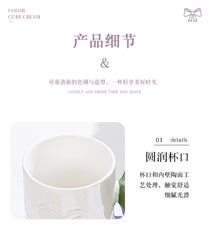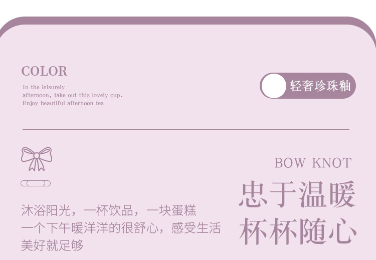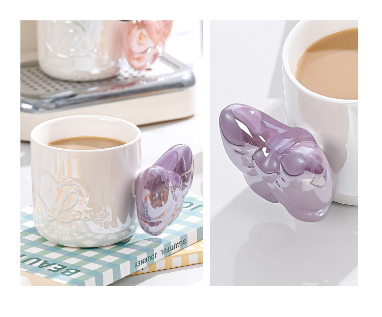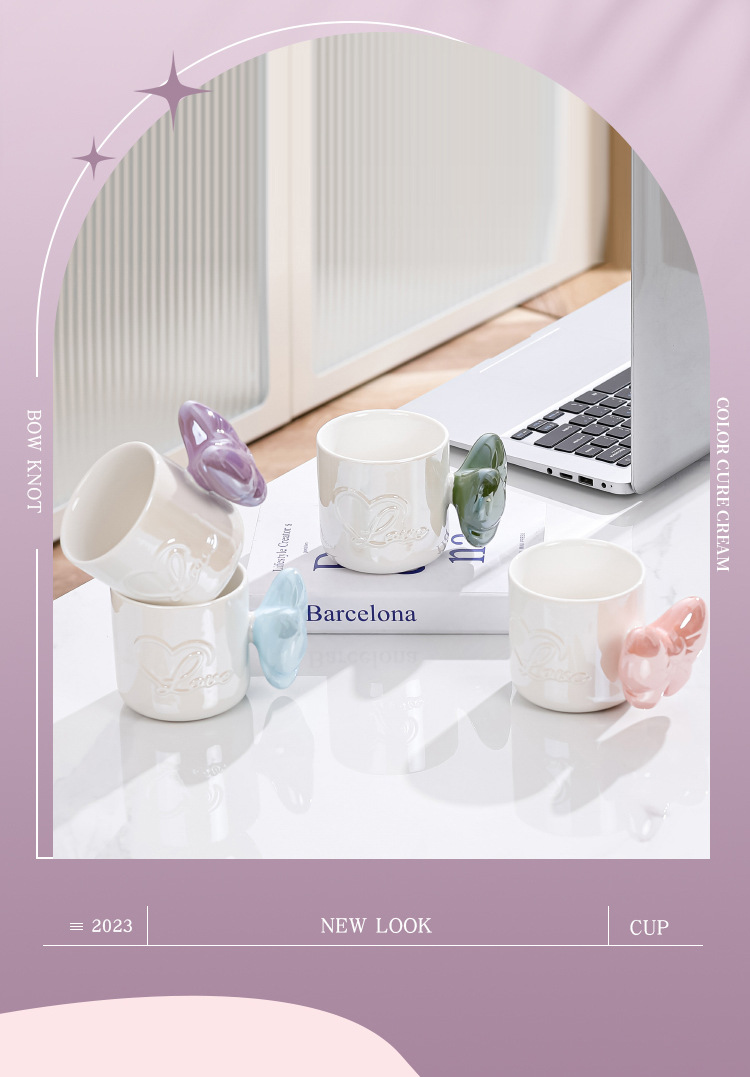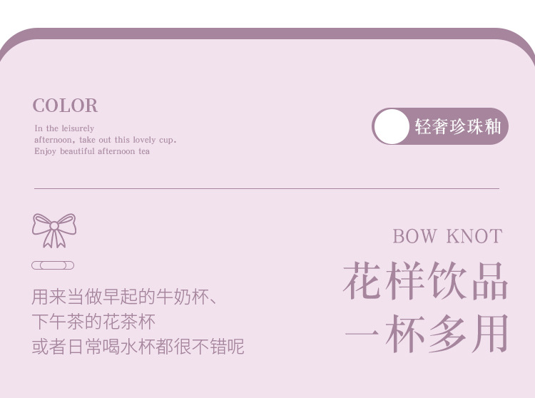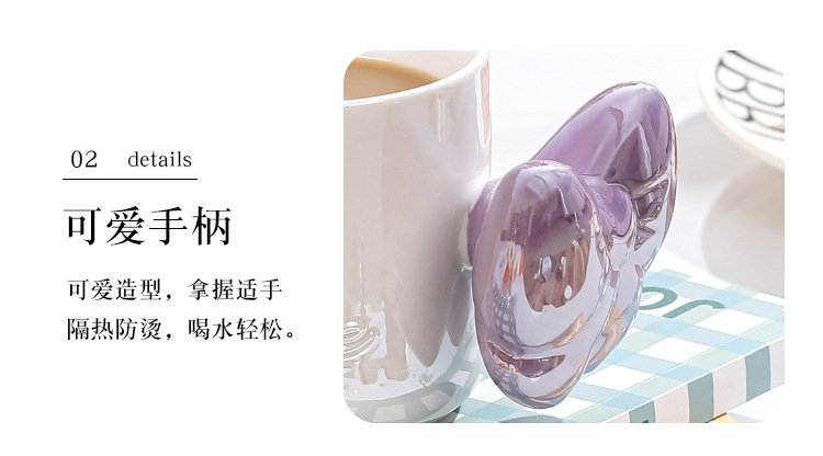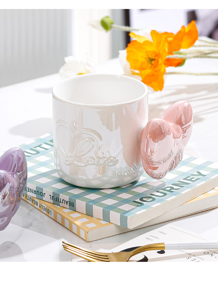 Ins風少女心珠光マグカップリボンハンドル大容量カップオフィスコーヒー牛乳朝食カップ