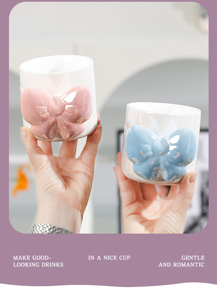 とてもきれいな蝶結びの真珠の釉薬陶磁器のマグカップの女子学生の高級感のコーヒーカップはコップの学生の杯を飲みます。