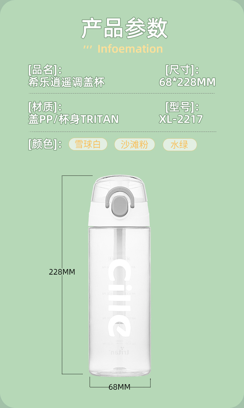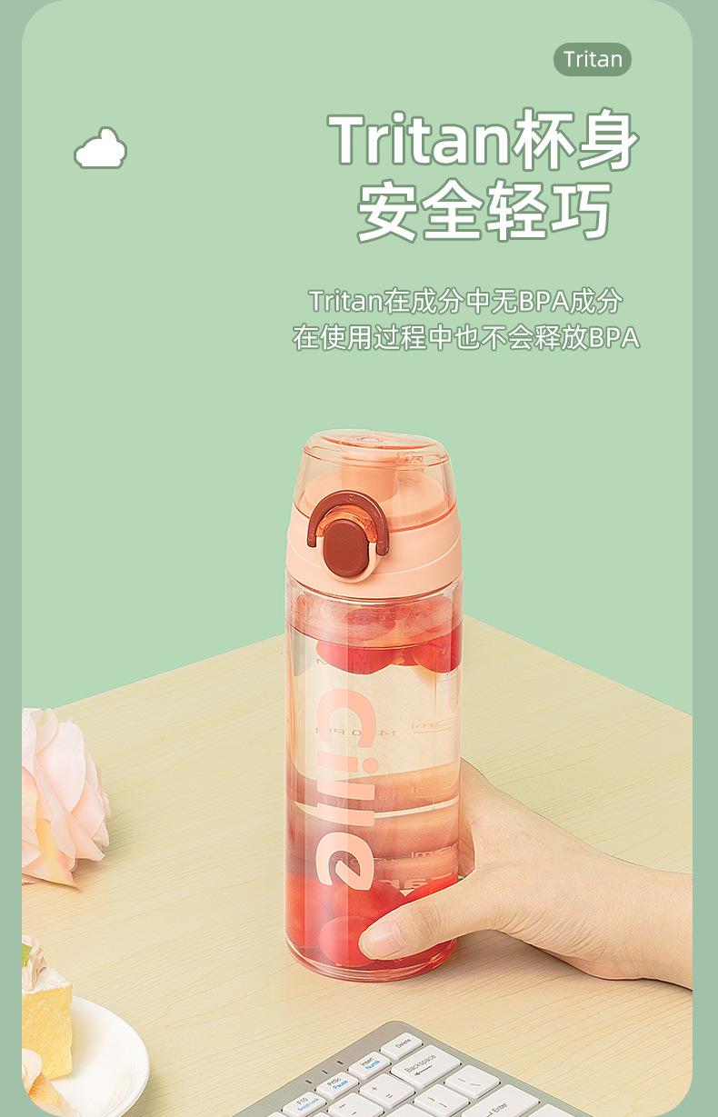 希楽tritanコップ携帯スポーツコップ男女学生シンプル清新森系コップ転倒防止プラスチックコップ