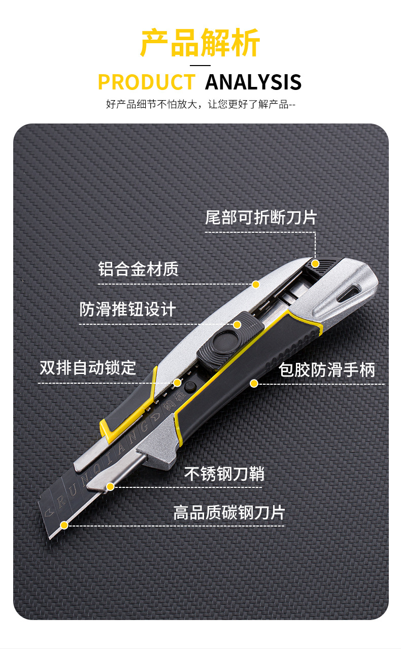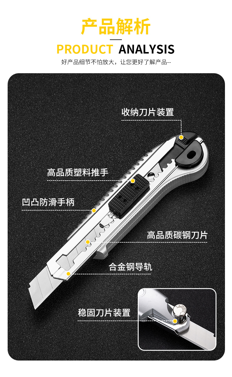 潤強ステンレス製万能ナイフ、ヘビーデューティー全鋼厚刃壁紙カッター、鋭利な切断力を持つヘビーデューティー万能ナイフ