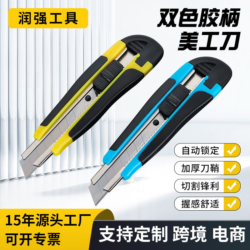 二色のゴム製ハンドル付きカッターナイフの製造卸売、紙切りナイフ、工業用小型ナイフ、厚刃、替刃