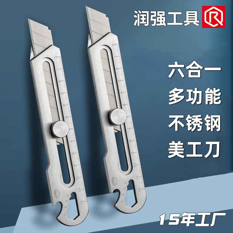 6-in-1多機能ステンレス製カッターナイフ、厚みのある超硬壁紙カッター、ヘビーデューティーカッターナイフ、大型宅配カッター