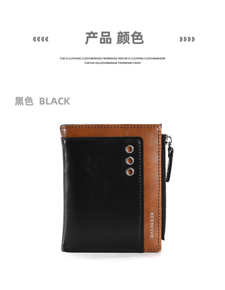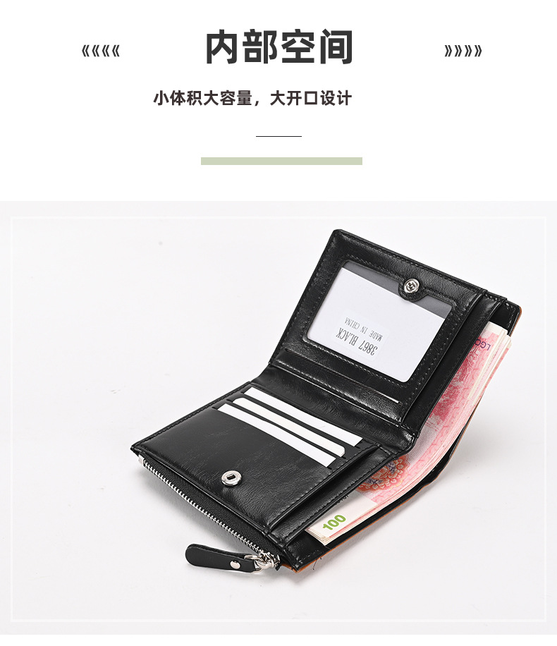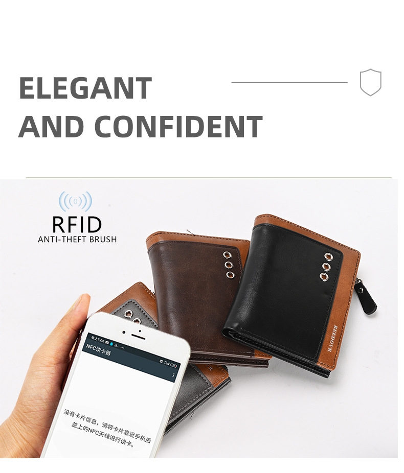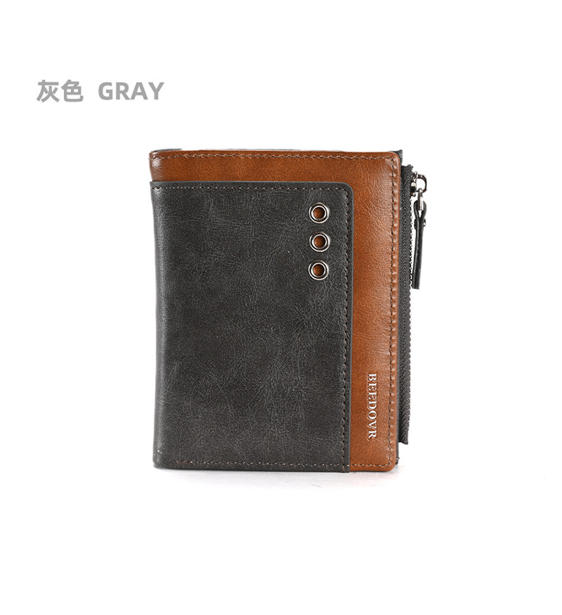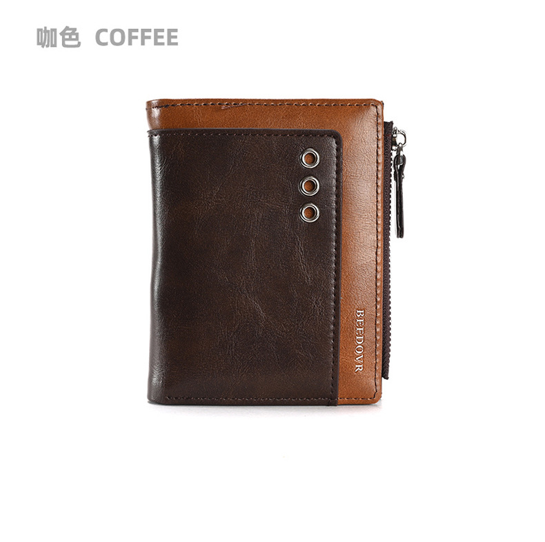 男性財布rfid盗難防止ブラシ短財布二つ折り多カード位ワックス皮小銭袋男性バッグ対外貿易財布