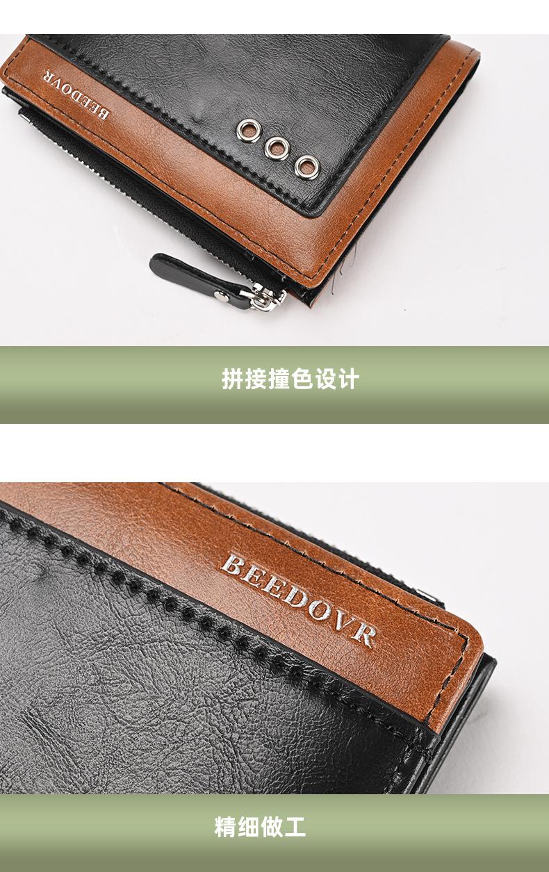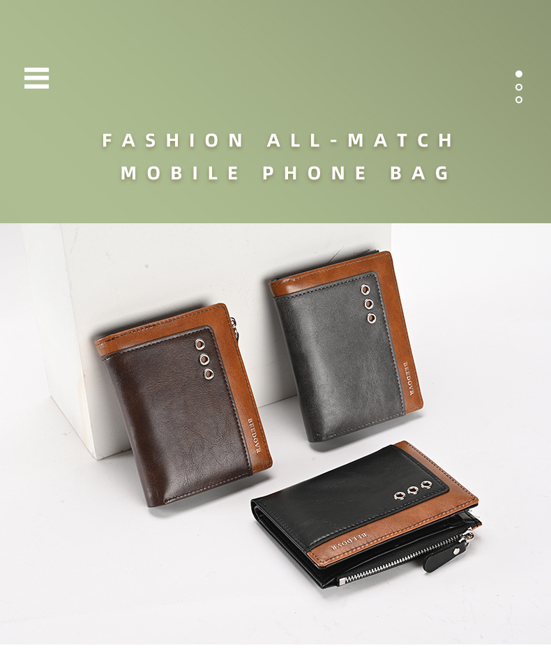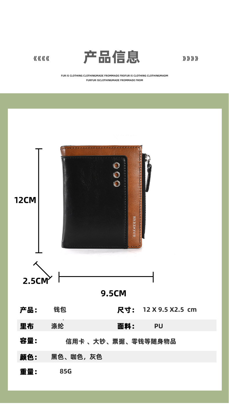 国境を越えたソース2023男性の新しいジッパーの短い財布の多いカードのファッションの縦型ミニボタンの財布