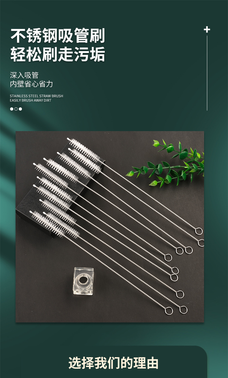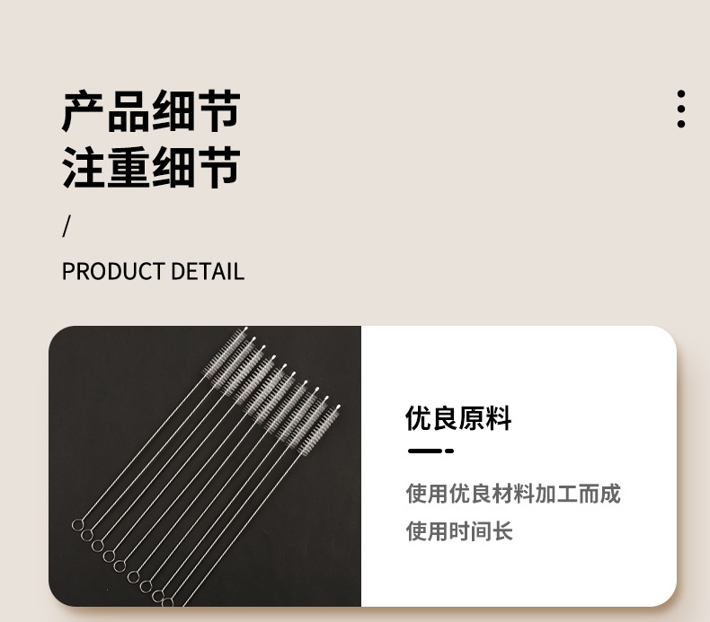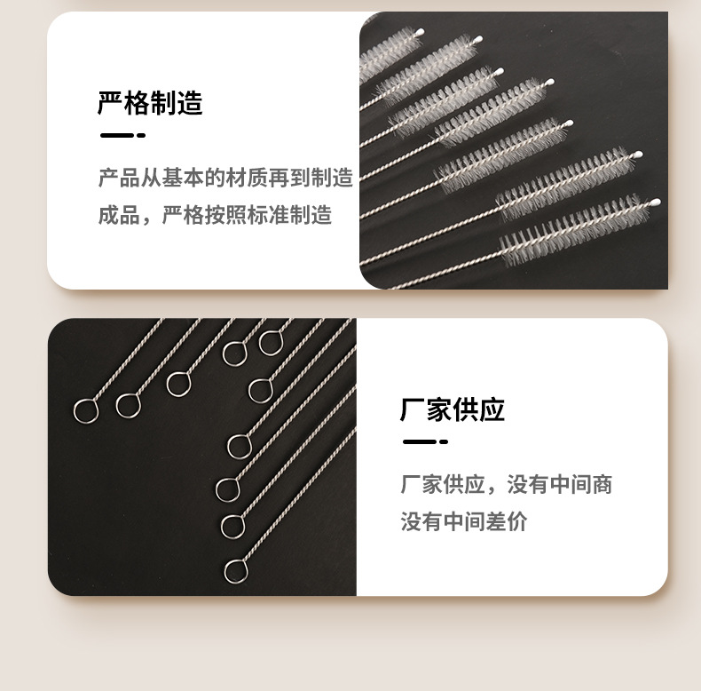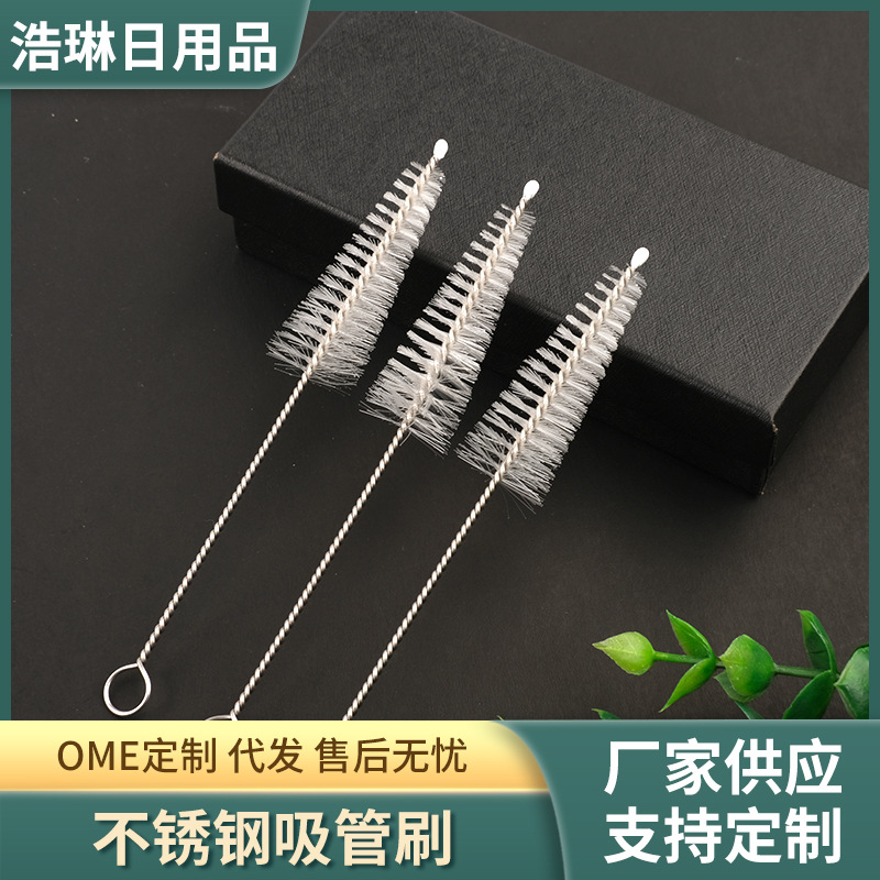 304不锈钢尼龙吸管刷 儿童奶瓶水杯毛刷硅胶玻璃试管尼龙清洁毛刷