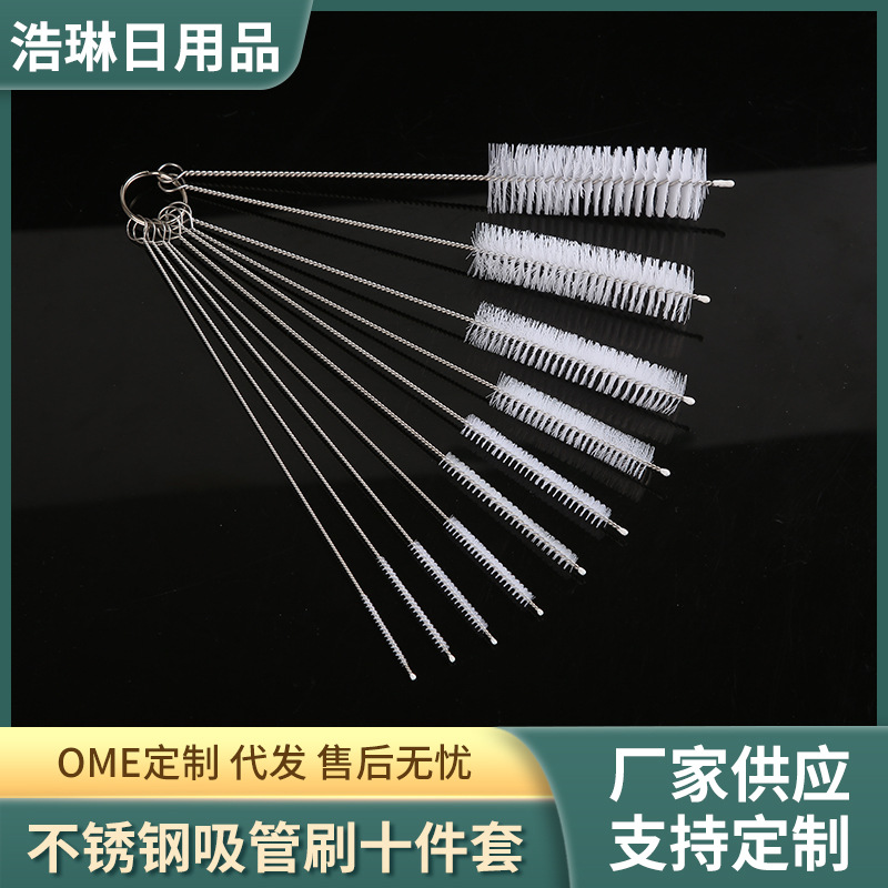 ストローブラシカップブラシ洗浄ブラシ10点セットの異なるサイズのステンレスストロー直管エルボブラシスポット卸売り