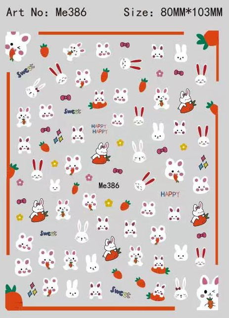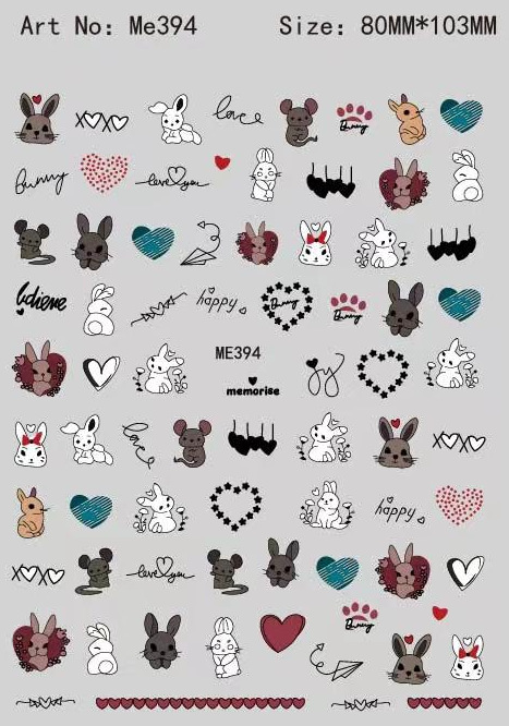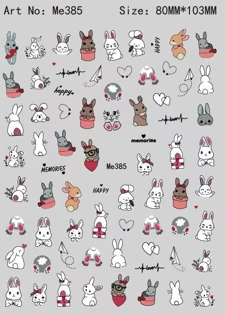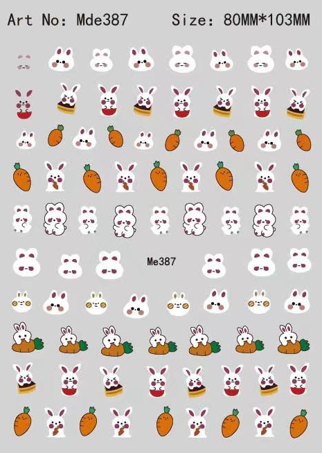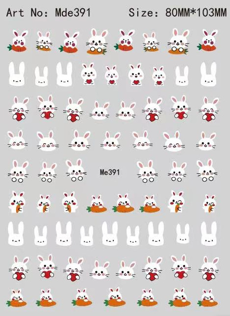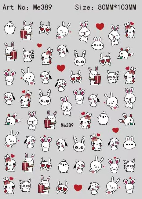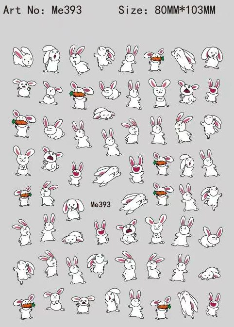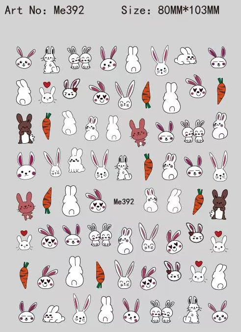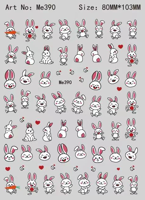 漫画のウサギのネイルステッカーかわいい漫画のウサギのロコウサギの子供のウサギのネイルステッカーMe384-394