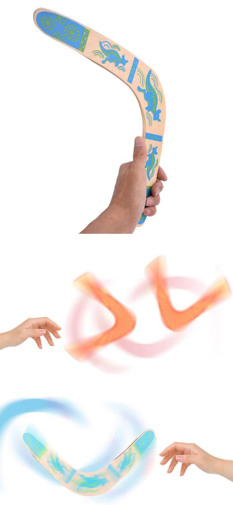 子供の木製のブーメランは飛来器のフリスビーに戻ります。