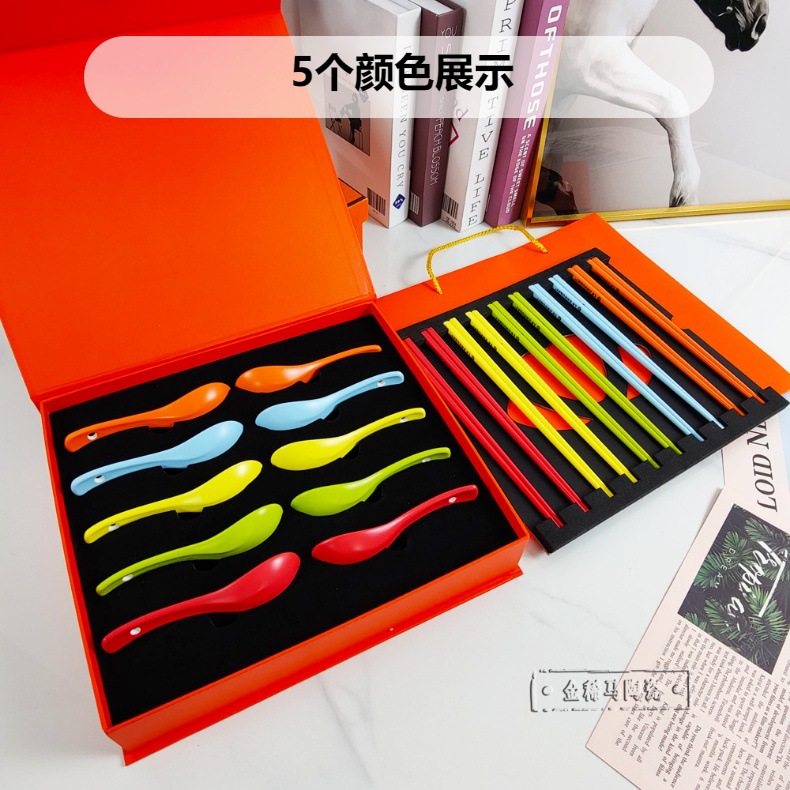 フランス製カラーセラミック箸マカロン可愛いスプーン20個入りギフトボックス食器卸売マカロンカラー系