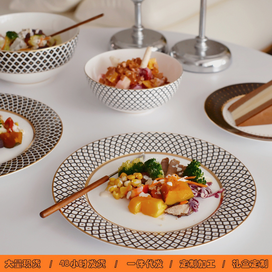 ヨーロッパの洋食プレートセラミックホテルレストランステーキディナープレートゴールデンエッジスターブレックファストデザートフラットプレートモデルルームプレゼンテーション