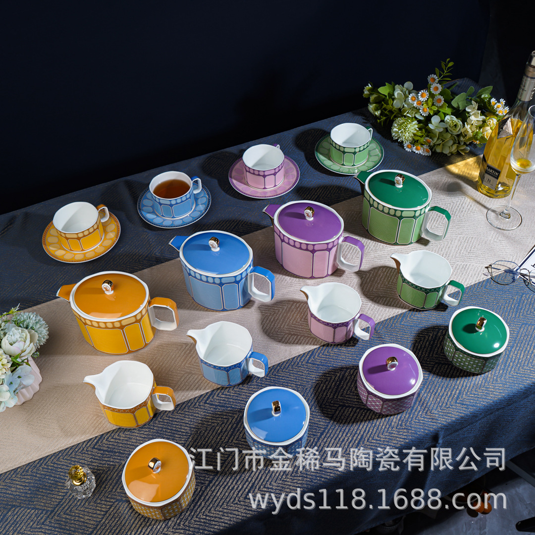 カラフルなスターボーンチャイナ金メッキアフタヌーンティーコーヒーカップとソーサーセットホテルレストランアフタヌーンティーカップとソーサー卸売