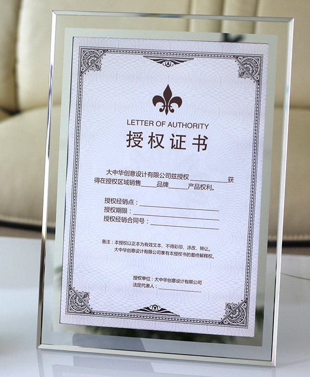 クリスタルガラス証明書メダルオーダーメード授権枠栄誉壁掛け壁a4企業従業員受賞表彰