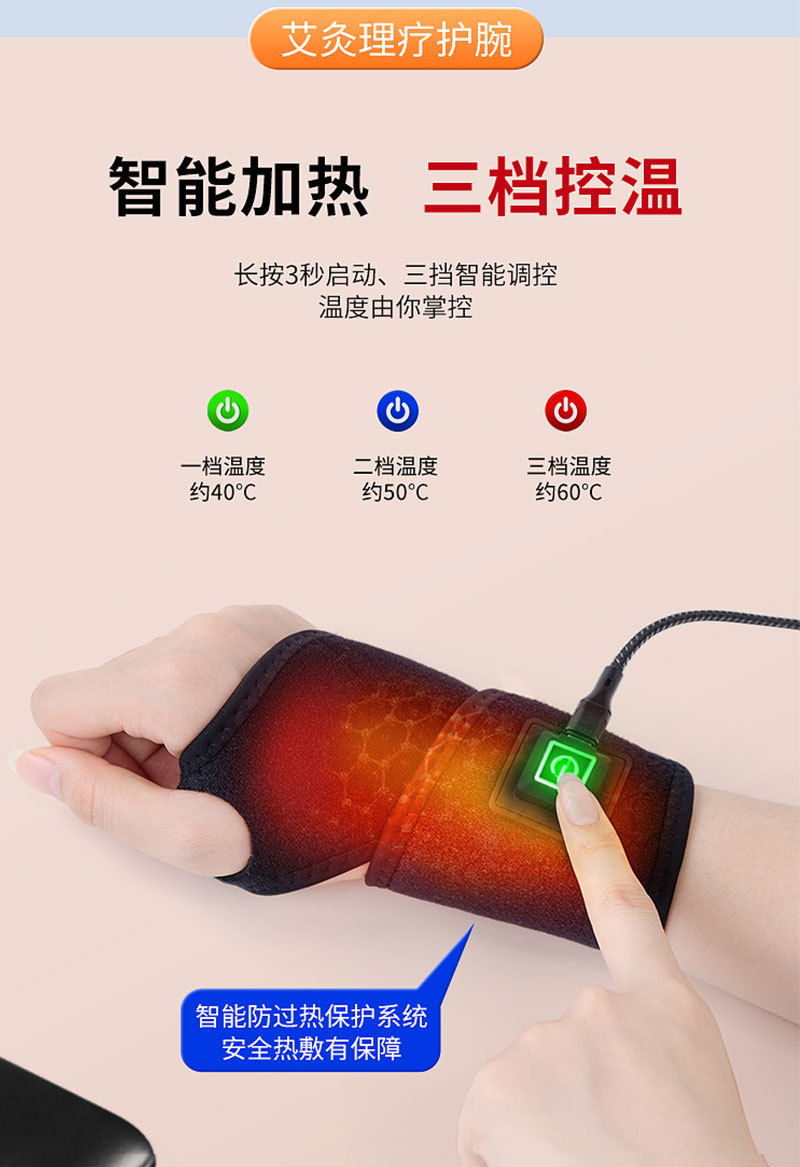 クロスボーダー電気加熱手首スマート充電三段温度制御加熱灸振動神門穴腕保護睡眠
