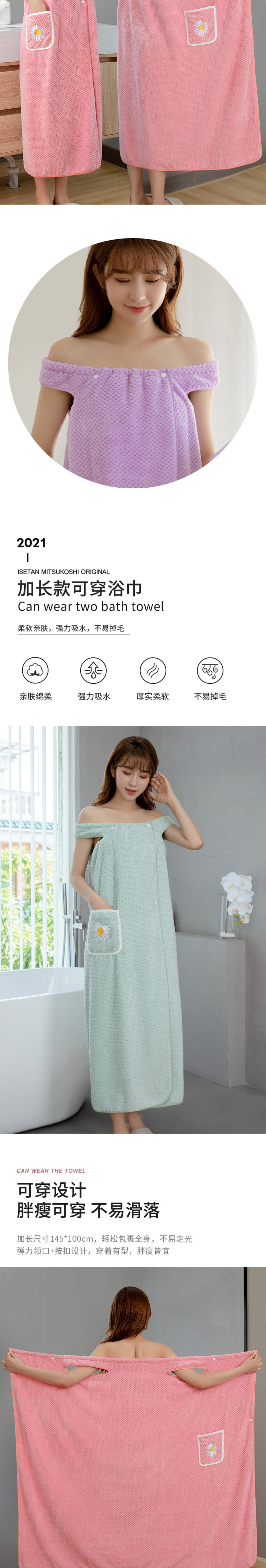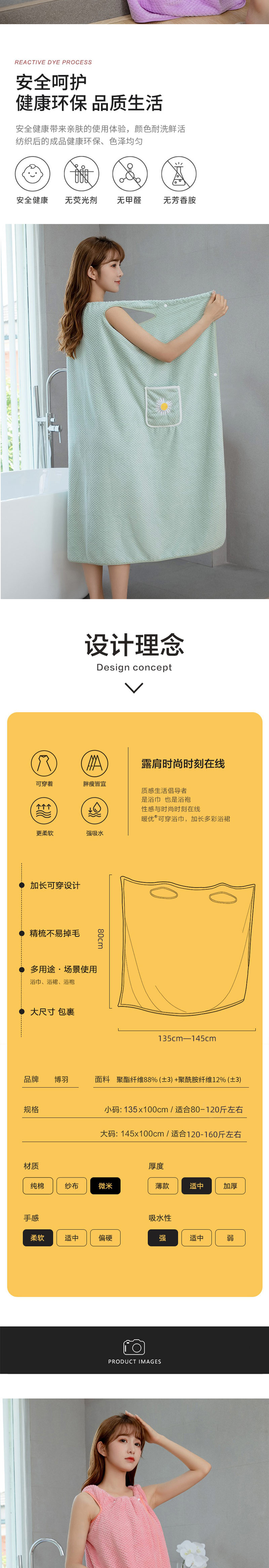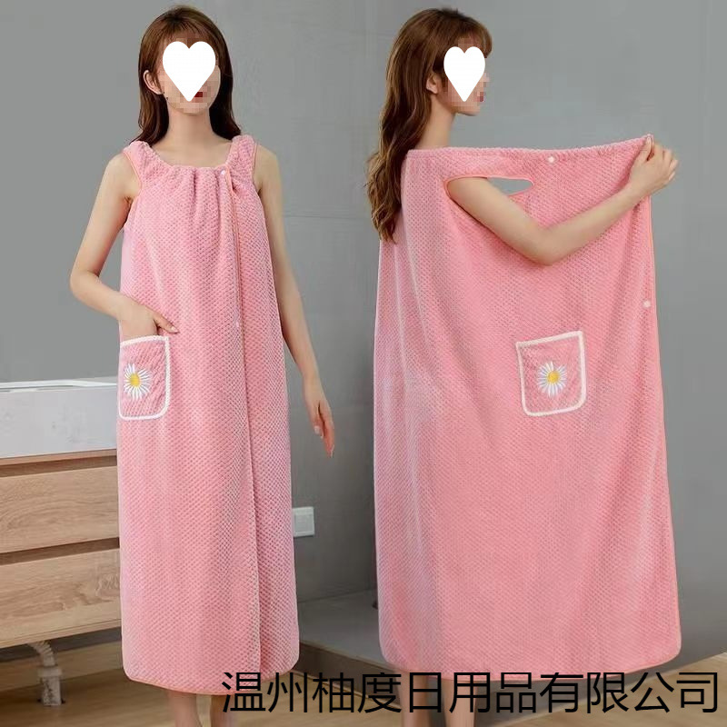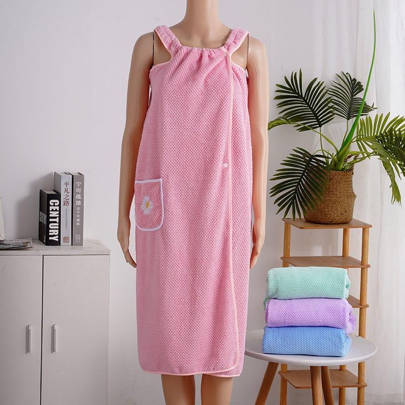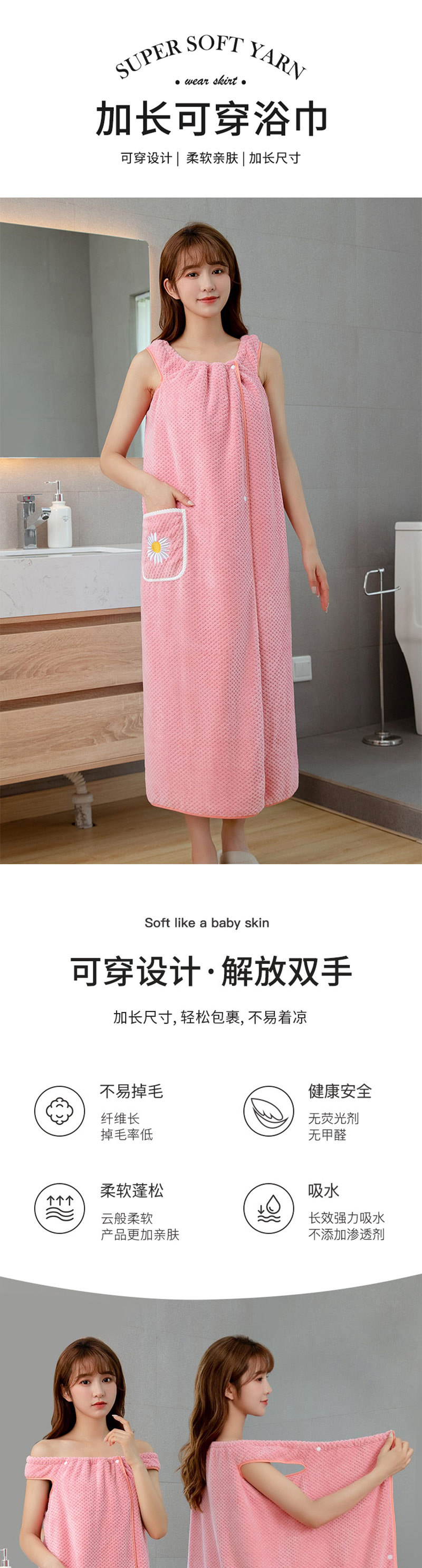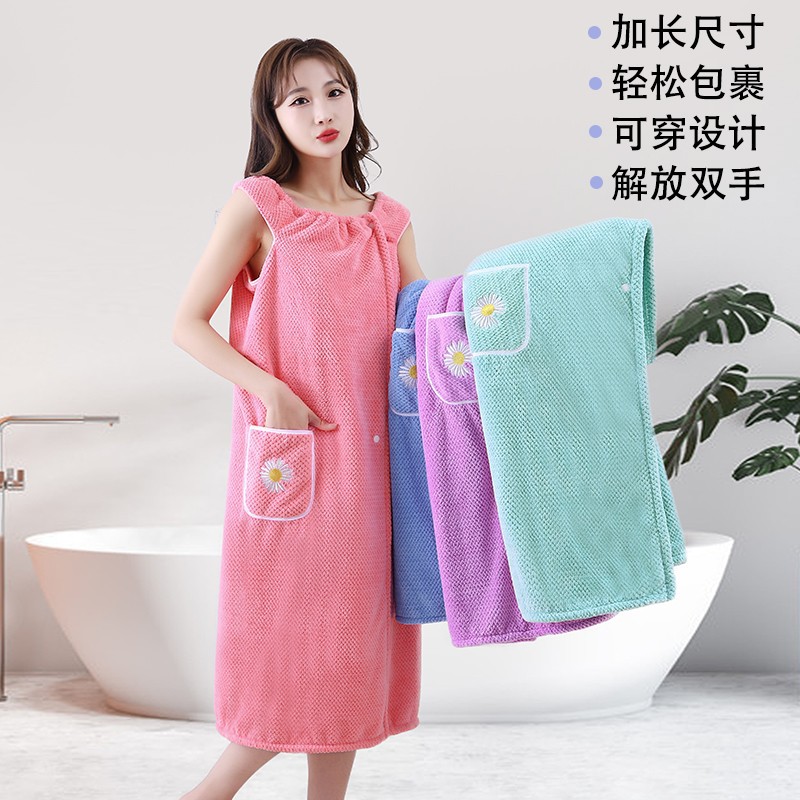 可穿式裹胸加大加厚吊带浴裙成人速干浴袍超大浴巾菠萝格刺绣雏菊