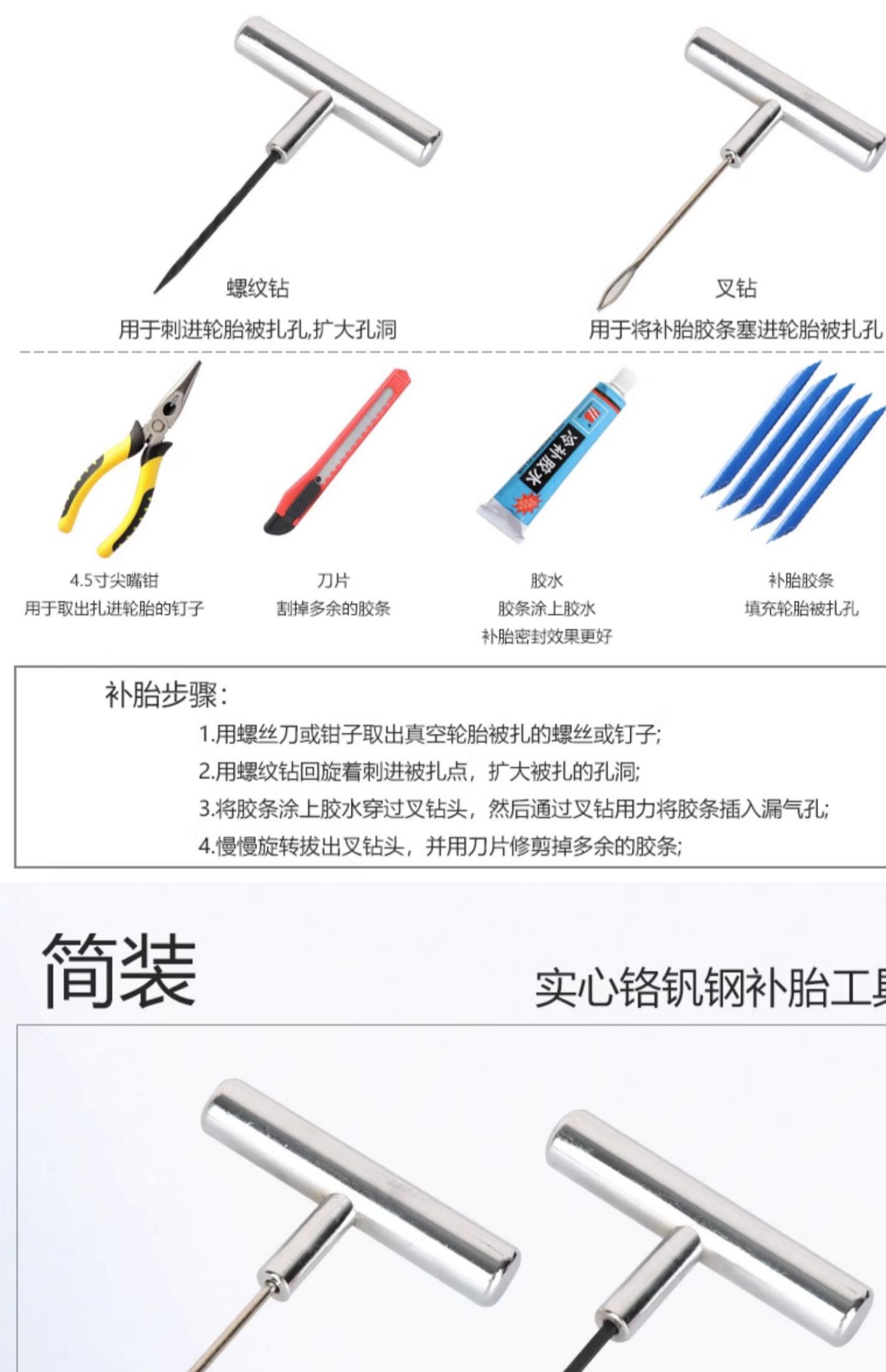 自動車タイヤ修理ツールセット電動オートバイ真空タイヤタイヤ修理自車運転緊急ゴムストリップ快速修理
