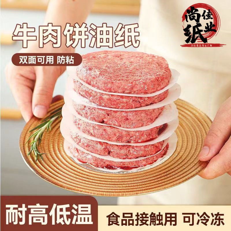 工場卸売100枚入り丸型食品用紙 冷凍肉用紙 ノンスティック両面シリコンオイル紙 ハンバーガー肉用紙